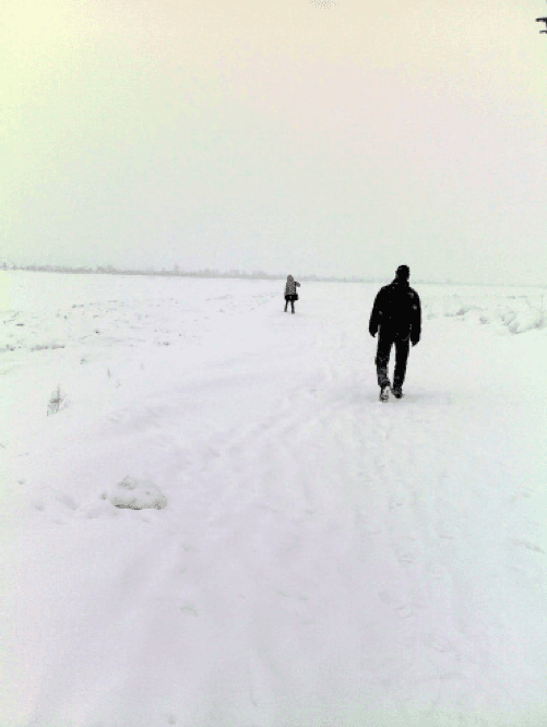 “One day I was walking home from work and I saw this man, and I thought ‘this guy is definitely a foreigner’ and I stalked him a little and I saw that his book was in English. So I asked him where he was from, and he was a Serbian-French photographer who liked taking pictures of a lot of nothing so he decided to come to Siberia. We ended up hanging out that weekend and drinking coffee. We went out to the edge of the river, frozen to the bottom in the end of January and I remember being very intrigued by the whiteness, so I snapped this. All of these photos were taken on this russian nokia cameraphone I had.”