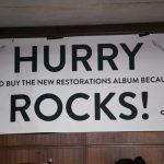 Hurry, the new project from Everyone, Everywhere guitarist Matt Scottoline opened the show and provided the funny “HURRY up and buy the new Restorations album because it ROCKS!” banner which hung in the back of the stage from the entire show. The band also turned heads with their fun cover of Billy Joel’s “Uptown Girls” which can be seen here. Progressive punk band Three Man Cannon followed, playing songs from their recently-released their debut full length album Pretty Many People (which came out on Lame-O Record last September). The band captivated the crowd with their melodic vocals and airy instrumental arrangements, with a punk rock twist. Wrapping up the openers was pop punk three piece Cayetana, who owned the stage playing hit track after hit track from their new album Nervous Like Me. Ben Pierce, the keyboardist from Restorations even joined them on stage to preform their single “Dirty Laundry”.