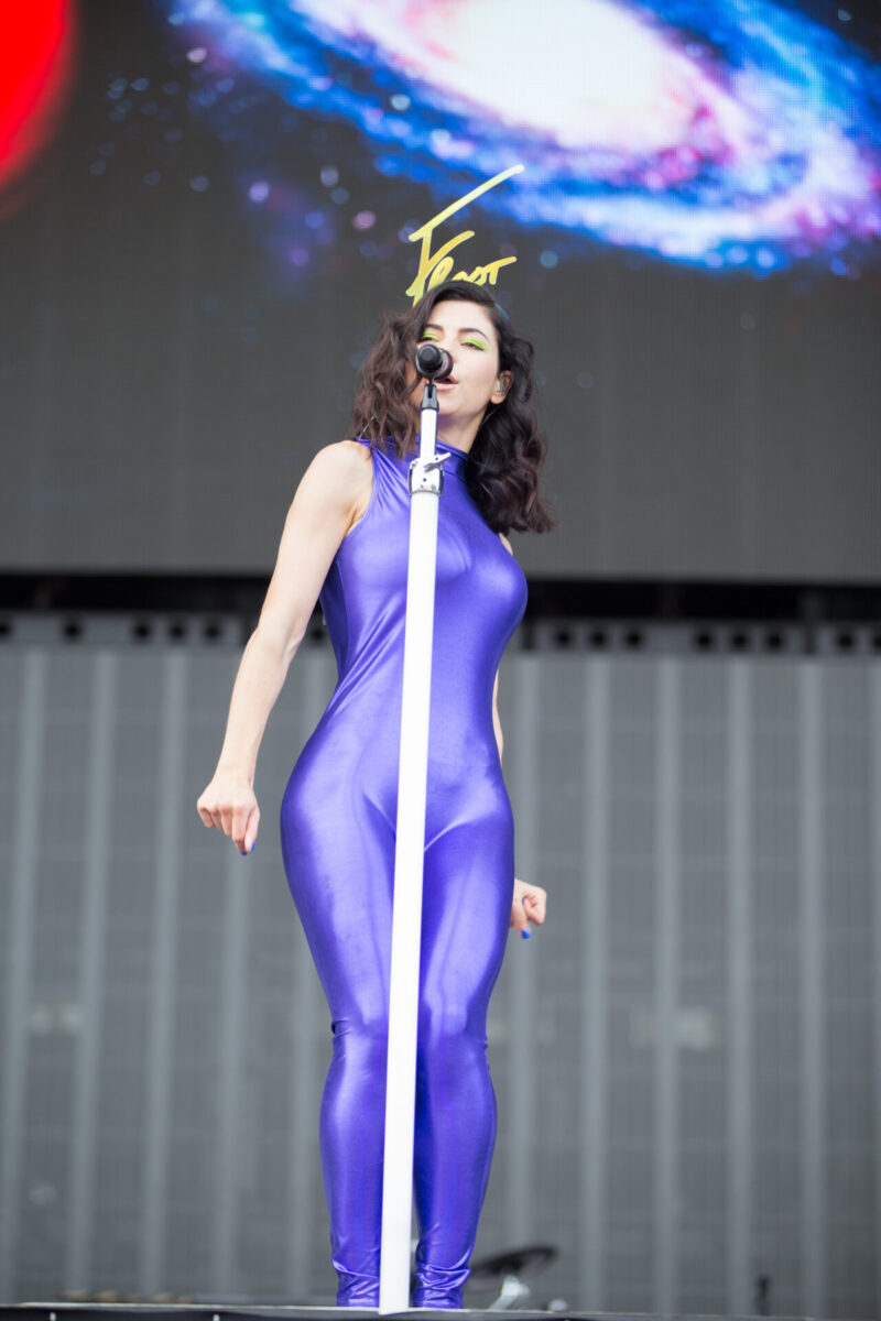 Another Brit, Marina & The Diamonds emerged on the main stage in a purple jumpsuit with a headband that said “Froot”, the title of her most recent full-length album. She dove into tunes from that such as “Forget” and “Savages,” but not forgoing the crowd favorite “I Am Not a Robot” which everyone could sing along to.