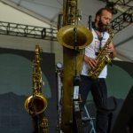 We raced down to the Flambeaux stage to catch S. Carey (or Sean Carey), an Eau Claire native and former drummer and supporting vocalist for Bon Iver. His nature-focused set was enhanced with the help of the UW-Eau Claire jazz ensemble (adding at least another 15-20 people onstage), making Carey’s songs take on an even more film-like quality than they already have. The crowd ate up anything Carey cared to share, including favorites like “In The Dirt” and “Alpenglow.” The “Creaking” performance stood out as something special, as I’ve often overlooked the song while listening to the Range of Light album, but hearing the song live with so many collaborators brought different parts of the track to life.
