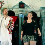 Leaving no time to waste, staff photog Jeremy and I headed over to the dome marked “Eternity Awaits” that I described yesterday. Once inside the dome, recorded “confessions” and “Alleluias” played as a soundtrack for the experiment as the hay bales started to fill with those anxious to confess. These recorded confessions included everything from a woman sharing she was really a cat to friends admitting they deceived each other; really weird mix of stuff. I pulled the number “12” from the ticket wheel and patiently waited. Astronautalis came out from the confessional between hearing confessions in full priestly regalia, guzzling a Miller Lite and sizing up every sinner in the room with his own appearance-based evaluation – never mind what each person was actually going to confess.