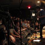 Next were the LA-formed, Philly-based duo Girlpool, who played a string of songs off their debut full-length Before The World Was Big. Beloved by those both in the Philly DIY scene and beyond (see for yourself with their NPR Tiny Desk Concert), Harmony Tividad and Cleo Tucker’s powerful guitar and bass paired with their hauntingly fierce vocals cut through the oppressive heat of the Church basement. There were many eager audience members and only so many ceiling fans to accommodate for the sticky summer evening. Still, the crowd was transfixed.