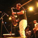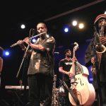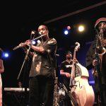 Two new pieces were unveiled during the two-hour set: a taut, spiky modern jazz piece by drummer Tony Austin and a rousing soul tune from bassist Miles Mosely, whose bristling vocal turn received a deafening response from the crowd. Mosely was a revelation throughout, his upright bass (a “regulation bass,” as Washington pointed out, “no motors or buttons, made of wood grown from dirt, no Monsanto”) evoking a turntable-scratching DJ one moment, a blistering electric guitar the next. The drum tandem of Austin and Ronald Bruner, Jr., maintained roiling rhythms throughout, especially on the Ethiopian jazz-influenced “Re Run Home” and a climactic drum duel on “The Magnificent 7.”