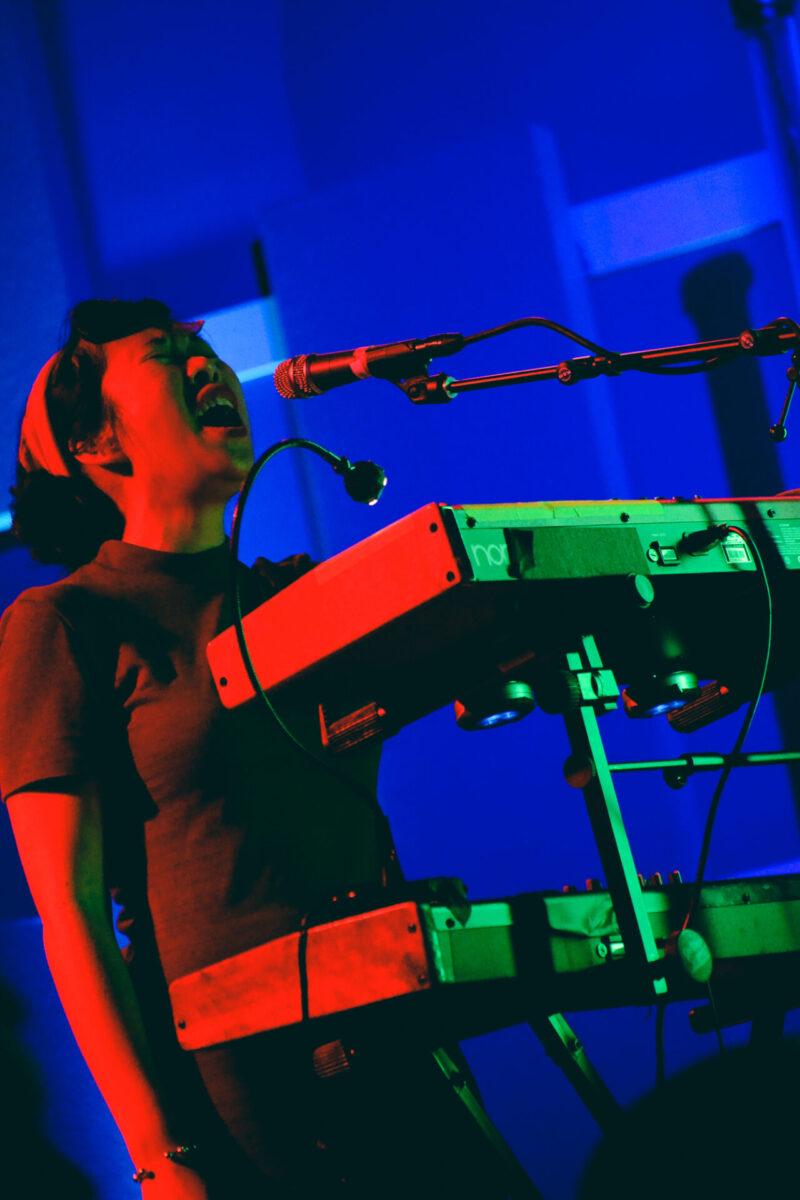 The Austin, Texas- natives have a psych rock vibe with quirky keyboard tunes and lots of guitar vibrato, and the atmosphere of World Cafe was complimented with colored light beams illuminating the band. They debuted songs off of their new album Jet Plane and Oxbow kicking off the set with “Prime.” The album is what Meiburg described as his take on a protest album, featuring tunes influenced by the current presidential election.