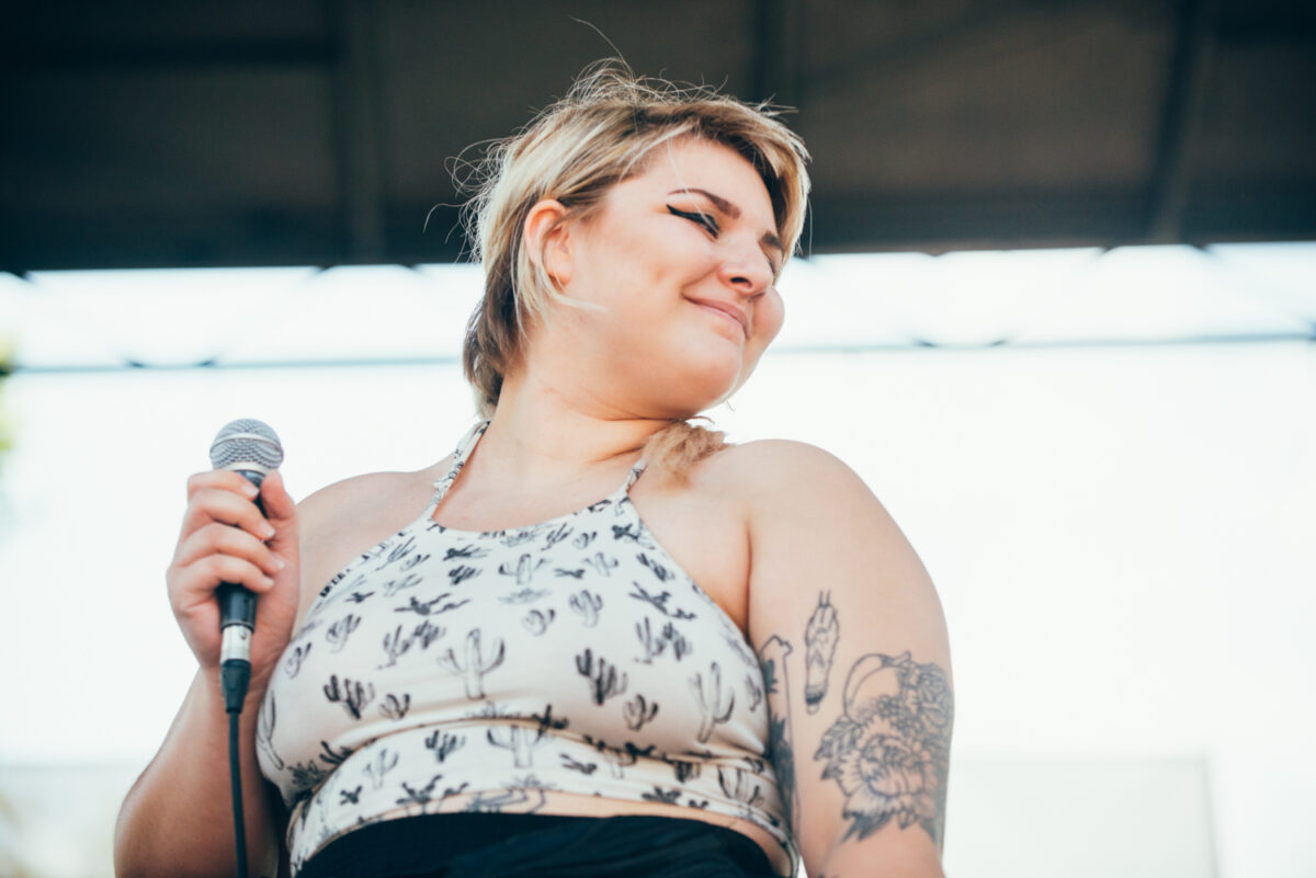 “Philadelphia gobbles up the stars / a thousand miles from where you are / if my arms were long enough I’d reach that far,” Zoë Allaire Reynolds crooned during “Googly Eyes,” the first song of Kississippi‘s opening set on day two of XPoNential Festival. On the Jerseyarts.com Marina Stage as the afternoon sun shined above, Reynolds and company painted an achingly relatable picture with their music and lyricism. Hailing from across the bridge, the four-piece has a striking live blend of deep riffs, shoegaze elements and no shortage of palpable emotion.