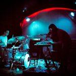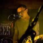 A little after nine o’clock the first opening band comes on, Birthworms. This local duo played their short but intriguing set to the rapidly growing Friday night crowd. Al Creedon (formerly of Bleeding Rainbow) and Ricardo Lagomasino (formerly of DRGN King and Deleted Scenes) make up the band, and create their electronic-noise sound using a drum set and effect petals. After their set ended and the stage was reset, Body Spray began their first song. The rock four-piece took the night up a notch with their performance; the lead singer moved about the stage with much energy, the three other band members contributed great guitar and drum playing to complete the energetic set. By the end of the second set the room had significantly filled in with an attentive crowd nodding their heads throughout each song.