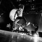 Next to play were Circa’s fellow Philly-area rockers, mewithoutYou. These guys are super fun to see live, and especially shoot; the energy they bring with them on stage every single time embodies who they are as musicians and the music scene of the city they come from (aka our GREAT city of Philadelphia). Lead singer and frontman Aaron Weiss does whatever the hell he wants on stage, to say the least. When he came out on stage last night followed by the rest of his band (wearing sunglasses even though it was night time and we were inside???) he and the band jumped right in to a high energy and all around fun performance. Weiss experiments with his vocals in a variety of ways, so getting to watch him do it in real time on stage was a cool thing to watch. He bounced around wherever he pleased on stage last night; going behind the drum kit, sitting on monitors, you name it. He even sunk down to his knees at one point (bringing the microphone with him) and sang from down there (photo below).