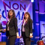 You’ll recognize the performers – Will & Grace’s Megan Mullally as Nancy and actress/author Stephanie Hunt as Beth. The pair met in Texas in 2011 and have honed an act of comedic relief and truly beautiful vocals over the last few years. They opened with the somewhat euphemistic number “Fine Brown Frame” before changing tones for the elementary school playground patty-cake choreography of “Everybody Loves a Lover,” a 1958 Doris Day hit.