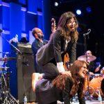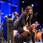 Mullally emphasized the “showbizziness” of the act, and there were certainly some Bob Fosse-influenced dance steps – they punctuated a rendition of Irving Berlin’s “My Walking Stick,” which also featured guest vocals by Petra Haden. Putting gimmicks to the side for a moment, we heard a moving gospel number that showcased Mullally and Hunt’s natural harmony pairing. But true to form they ended on a laugh, bringing out comedian Nick Offerman for a drum cameo during “Saved.”