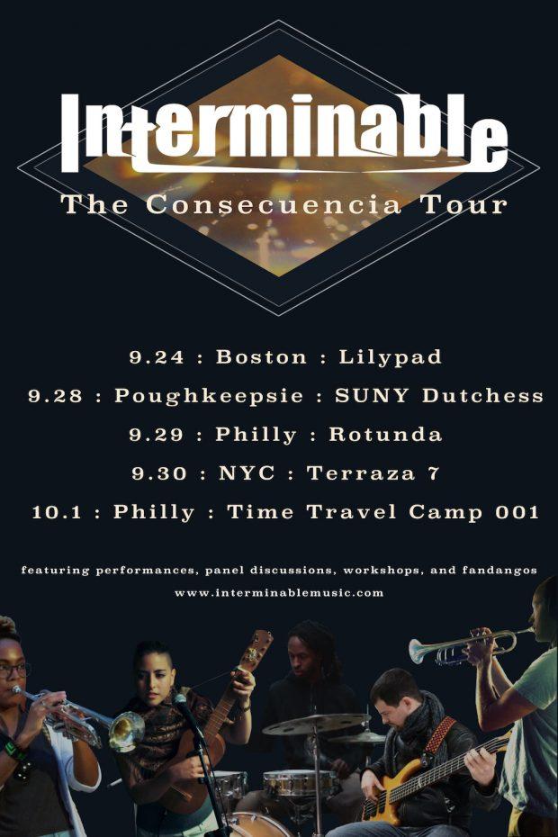 While we wait for it to roll around, you can catch Interminable plaing an acoustic duo show this Wednesday, August 30th, at Dahlak Paradise in West Philadelphia. More information on that show can be found at the band’s website; below, listen to some music on Soundcloud, watch a video profile from PhillyCAM and check out a poster with Interminable’s tour dates.
