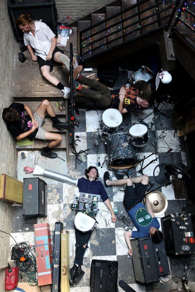 Today, this band of childhood friends rehearses on the ground floor of a two-story warehouse space in Fishtown, and three of the bandmates live on its second floor. I step across amplifiers and instrument cables to climb a staircase with a metal rail bound by a brick wall, and am greeted by a gregarious tabby cat at the summit. (“That’s Dr. Shivers,” says singer-guitarist Keith Abrams. “She’s got a PhD in cuteness.”)