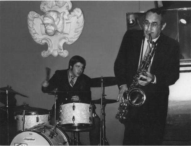 Bruce Klauber at 16, drumming for saxophonist Charlie Ventura | photo by David Myers | courtesy of the artist