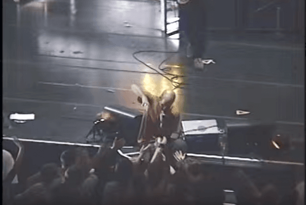 These shows are, to rock fans who today are in their mid- to late-30s, somewhat legendary; newcomers saw them for the first time on this tour. Enthusiasts saw all three nights — and the band played to the devotees with varying setlists leaning heavy on Monster and newer-than-the-new-album tunes, stuff that would make up 1996’s New Adventures In Hi-Fi. Mega-fans even followed them across the country, show-to-show. And thanks to Philly videographer Markit Aneight, video of all three Spectrum performances is on YouTube for your viewing pleasure, beginning with the October 12th show.