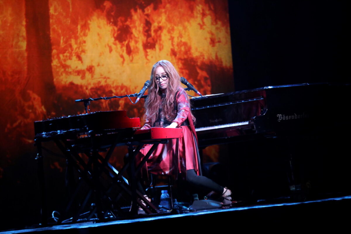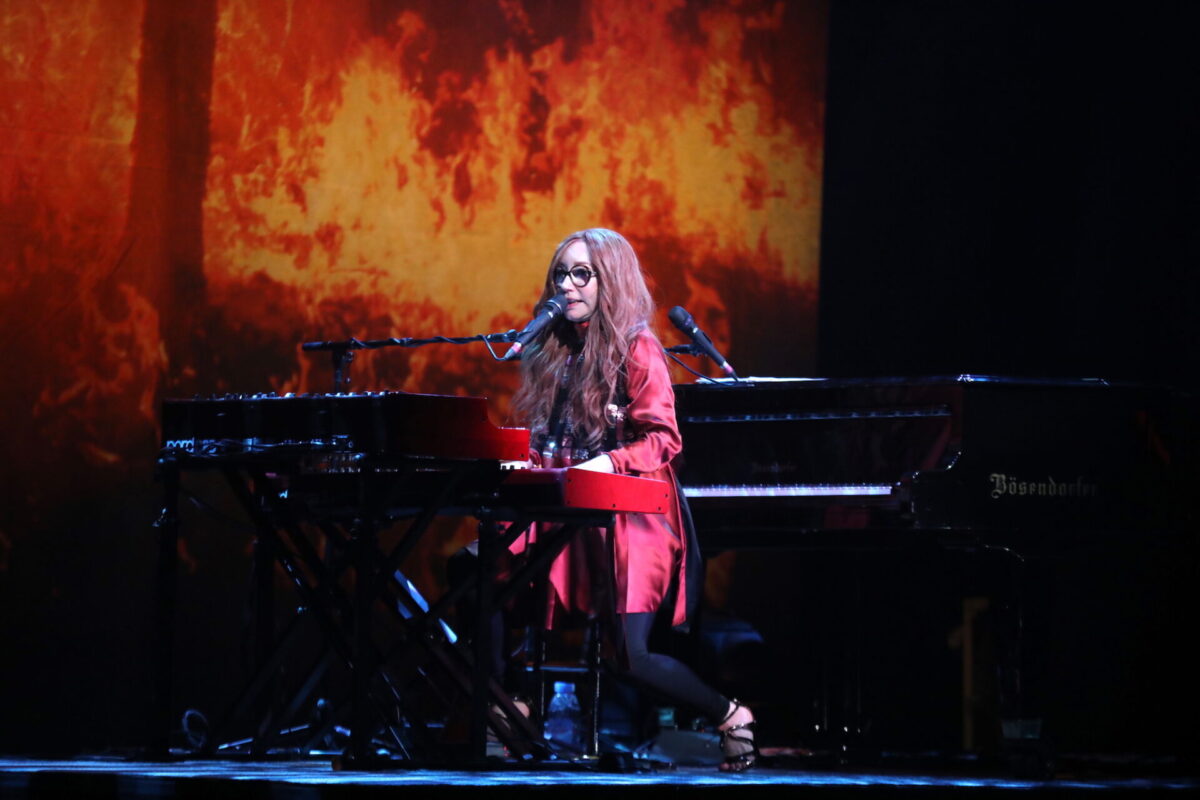 Amos included just three singles from elsewhere in her discography on the setlist (“Spark,” “Silent All These Years,” and “Pretty Good Year”) and surprisingly chose not to play anything from 1996’s Boys for Pele. Regardless of what songs she did play, each was met with thunderous applause that slowly wound down to soft sing-a-longs, collectively whispered consonants piercing the air, especially during fan favorites like “Cloud on My Tongue” and “Precious Things.” She also elicited ecstatic whoops from the crowd as she made her signature moves, like quick switches between the Bösendorfer and Rhodes/Wurlitzer setup mid-song, sometimes straddling the bench to play both simultaneously, and once punctuating a song by slamming the keyboard cover with a loud CRACK!