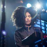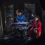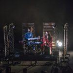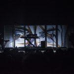 During the transition from opener to headliner, the stage was fitted with Ibeyi’s keyboards and percussion instruments (cajon and bata drums) along with a set of sliding venetian blinds that added a sense of cinematic intimacy to the stage, as if the audience were about to be serenaded inside of the bands home studio.