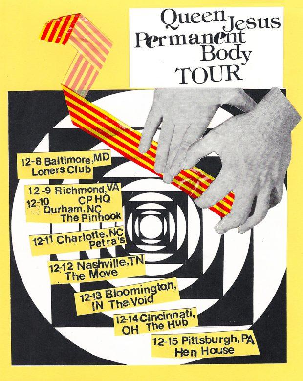 Ahead of their sold out “New Year’s Eve Eve” show at Johnny Brenda’s with The Districts and Mannequin Pussy, Permanent Body have managed to find time to squeeze in a quick December tour. The Philly favorites have teamed up with fellow locals Queen Jesus for the week-long co-headlining run, which will take them down the East Coast through Baltimore and North Carolina before they head west and hit up cities like Nashville and Cincinnati. With eight shows in eight days, it’s sure to be a fast-paced, fun-filled trip for the bands, and if you’re in the mood to see some of Philly’s finest in places that aren’t Philly, take a look at the full list of dates below and start planning your own road trip.
