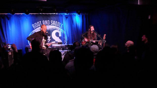 The opener this night was slated to be John Dyer Baizley of heavy rock rippers Baroness — which, nobody knew what that was going to entail, including Baizley himself apparently. He told the crowd that he was nervous about the set, since he typically does not play acoustically or solo, and wound up being joined onstage by Gina Gleason, lead guitarist in Baroness; he’d asked her to play the gig with him only a week before. Their knockout set was pretty much stripped-down and re-arranged Baroness cuts, accented by tasty solos. A total treat, and a giddy Showalter watched from the back, heckling “ACTIVE ROCK” as they played jams like “Chlorine and Wine” and “Shock Me.”