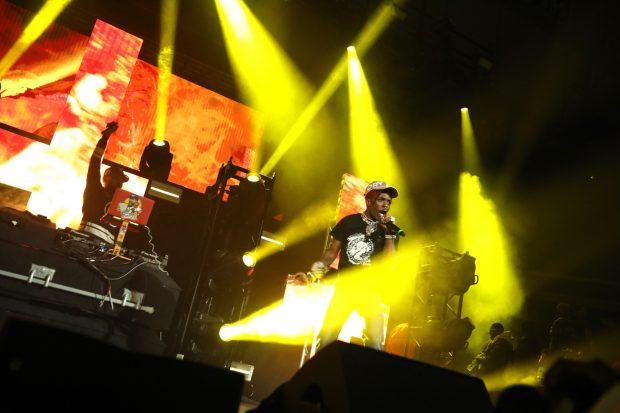 It started out low-key enough — Ontario rapper Nav came out to a modest but warm reception and joined Uzi on their collaborative single “Wanted You.” Next up, A$AP Ferg was in the wings and rushed the stage to even louder cheers as the two MCs traded their verses on Carnage’s “WDYW” (the song that Uzi climbed the food truck to at Roots Picnic). The jets of flame lit up again for the massive banger “Of Course We Ghetto Flowers” from Uzi’s The Perfect Luv Tape as Playboi Carti strutted to the barricade and worked the fans camped out in the front row while rapping his contribution to the song.
