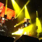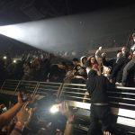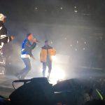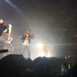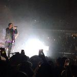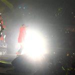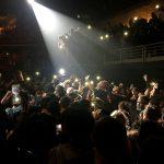He leapt off stage right, flanked by security detail, who followed him as he scaled the collapsed bleachers along the arena’s south wall. Upon reaching the mezzanine level, Uzi balanced perilously on the railing and hyped up the crowd at his feet (which those security persons nearby, holding his ankles and making sure he didn’t slip). After a couple minutes, he slowly removed his gold chains, and handed them one by one to the bodyguards, along with his wired in ear monitor, and gestured to the crowd to circle up. And he jumped.