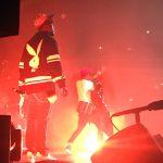 It started out low-key enough — Ontario rapper Nav came out to a modest but warm reception and joined Uzi on their collaborative single “Wanted You.” Next up, A$AP Ferg was in the wings and rushed the stage to even louder cheers as the two MCs traded their verses on Carnage’s “WDYW” (the song that Uzi climbed the food truck to at Roots Picnic). The jets of flame lit up again for the massive banger “Of Course We Ghetto Flowers” from Uzi’s The Perfect Luv Tape as Playboi Carti strutted to the barricade and worked the fans camped out in the front row while rapping his contribution to the song.