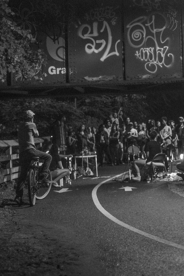 In Philly, when a friend invites you to a show with two random bands at midnight under a bridge, make sure you go! I’ve biked and walked the Grays Ferry Crescent Trail, awaiting the day that it finally connects with the Schuykill Trail. I’ve even spent a few nights skating at the skate park located directly under the Grays Ferry Bridge. Little did I know that on special occasions, a few motivated artists and organizers throw awesome DIY, guerrilla music events under the dim trail lights.