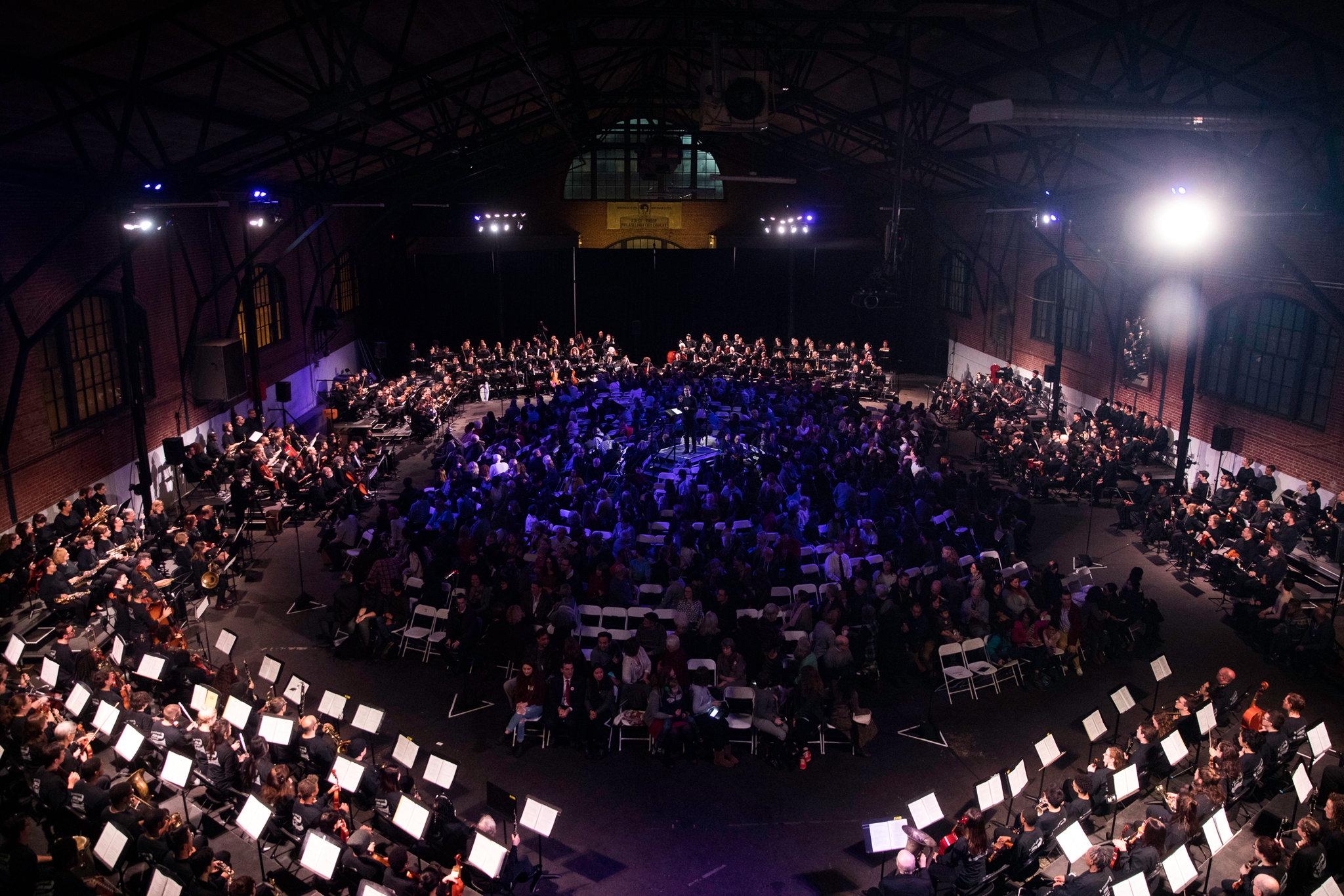 Flash forward to 2017, as part of the Symphony for a Broken Orchestra, me and around 400 musicians of all ages filed into the armory to perform and brand new composition by David Lang. The orchestra set up in a circle around the perimeter of the main gallery, leaving room for the armored vehicles outside of the circle and the audience seated inside the circle facing out towards the musicians. The goal of the performance was the highlight and help remedy the fact that the Philadelphia School District had over one thousand broken instruments collecting dust in closets.