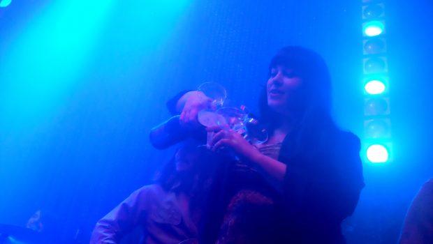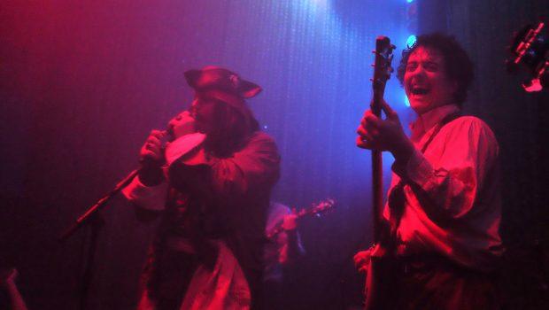 As for the stroke-of-midnight spectacle — it was one of the most visually entertaining of the various Johnny Brenda’s NYE gigs I’ve seen, even if the performance got a pretty sloppy during that ten minute stretch. You can hardly blame them, though; with an actor playing Jack Sparrow joined by a couple Pirates of the Caribbean-esque cohorts leading the countdown, and Paul “Jello Man” Vile providing the revelers with free Jello shots pulled from a giant cardboard sign where plastic cups spelled the band’s name, chaos kind of ruled the stage at this point.
