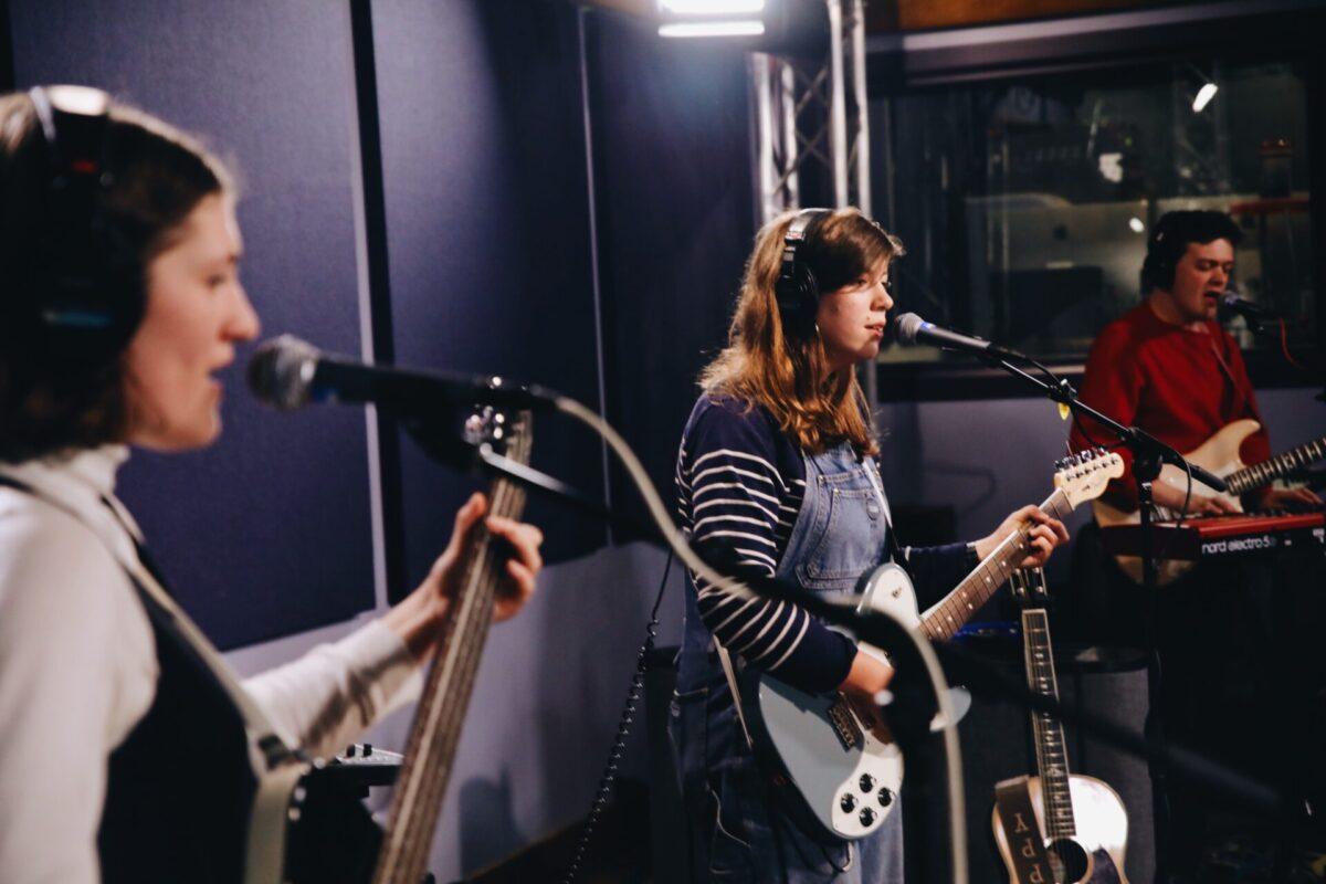 Joining us in the studio for our first Indie Rock Hit Parade session of the year is the band behind one of my favorite records of the last year. Formed just a few years ago in London, Girl Ray‘s debut, Earl Grey, was released in 2017 when all of the members were still teenagers. Featuring Poppy Hankin on guitar, Iris McConnell on drums and Sophie Moss on bass (along with their friend and producer Mike O’Malley on guitar and keys), Girl Ray’s music incorporates influences well beyond the members’ years. Everything from pop to punk to dance music comes together in Girl Ray’s performance, which gives exciting new life to these still-evolving songs.