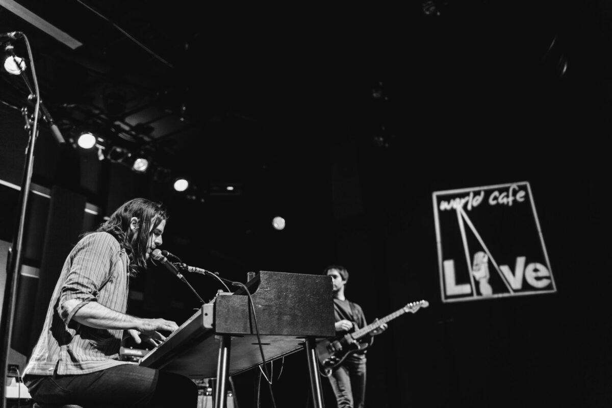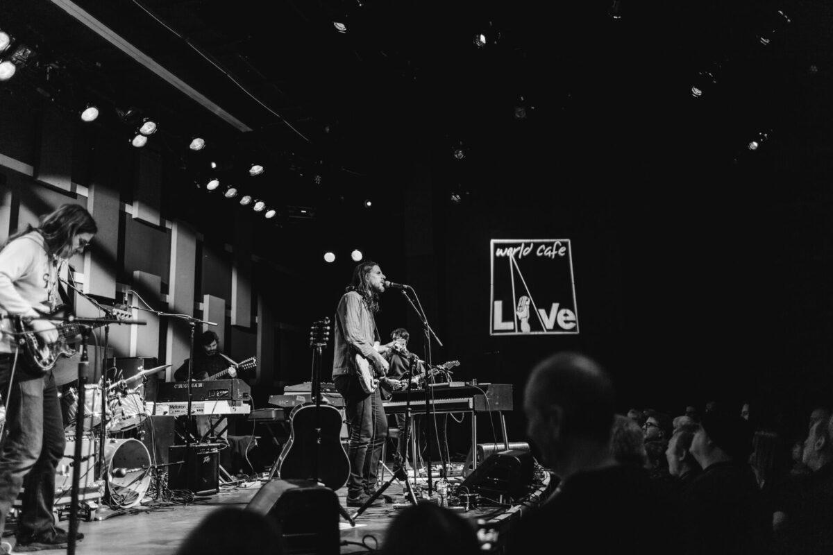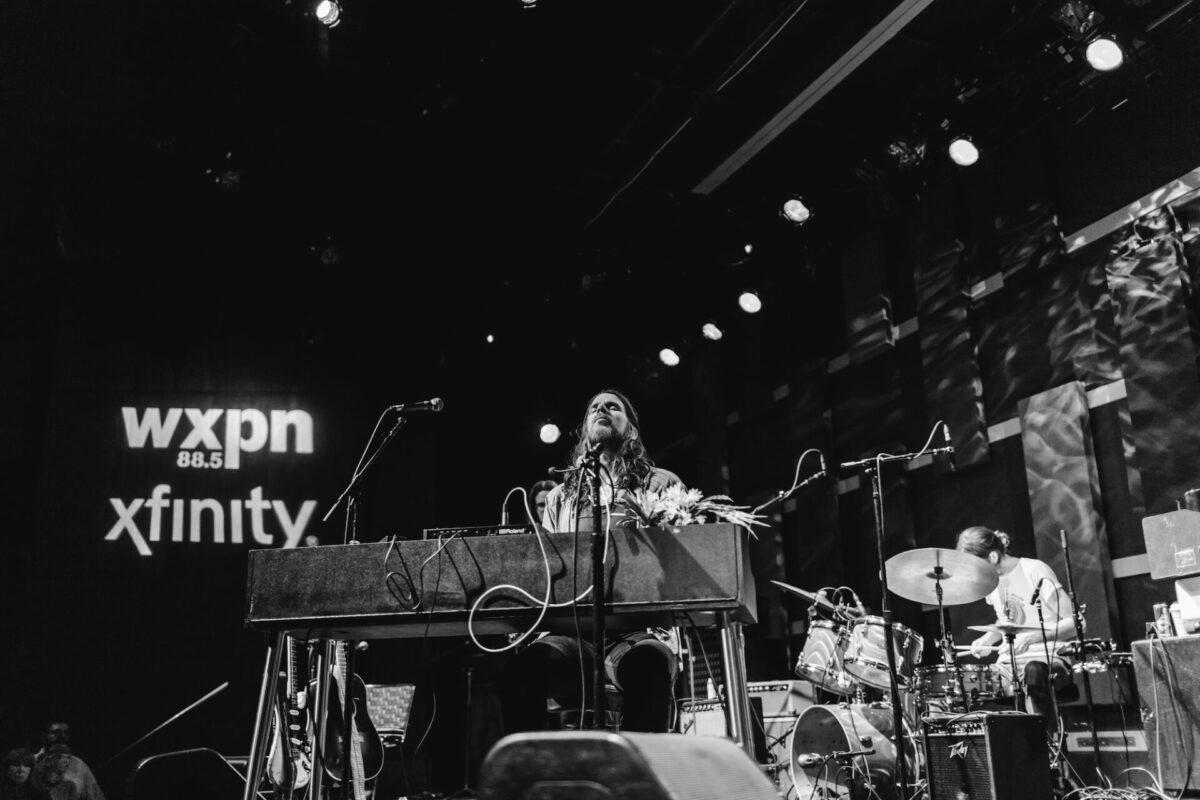 Eclectic singer-songwriter and producer Jonathan Wilson‘s new album Rare Birds is an ambitious undertaking. At 13 tracks strong, many of which lie in the six- to eight-minute range, it was impossible for Wilson to bring all of his new tunes to the World Cafe Live stage for Free at Noon this afternoon, but with the way Wilson and his band filled the room with their soaring sound, you almost wouldn’t have known that what we heard today was only a small sampling of the musician’s catalogue.