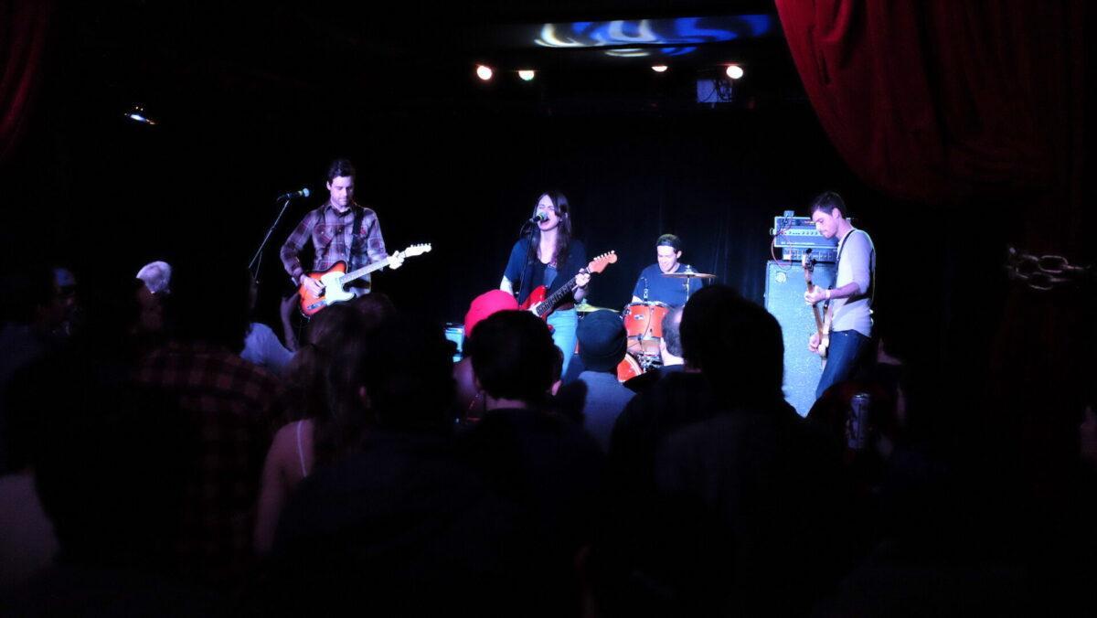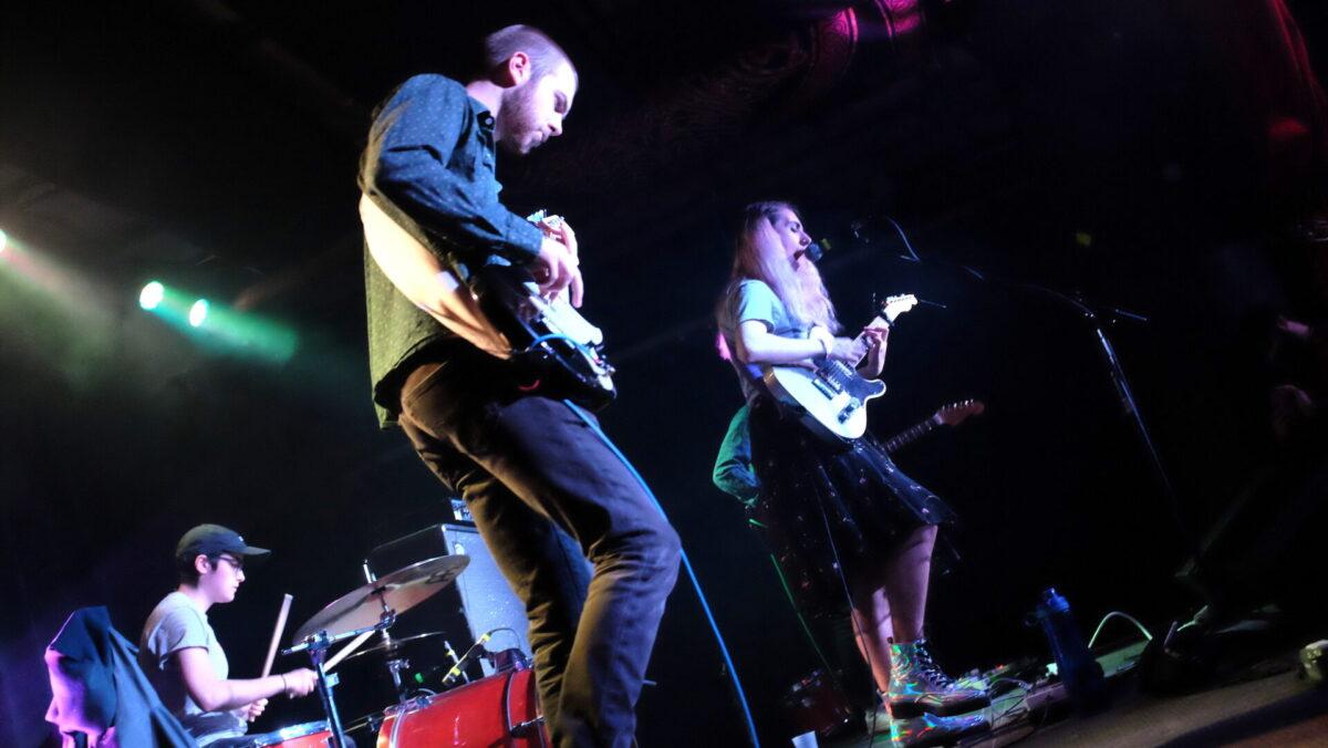 In that spirit, Queen of Jeans closed its album release party at Underground Arts last night with a rousing bit of meta-pop, “U R My Guy,” where Shangri-La’s style trio vocals are employed, but instead of fawning over some busted dude, they’re putting him in his place: “your fame is borderline” goes one lyric from band leader Miriam Devora, followed later by the backing chant “he’s so fragile when he belongs to me” care of guitarist Matheson Glass and bassist Nina Scotto.