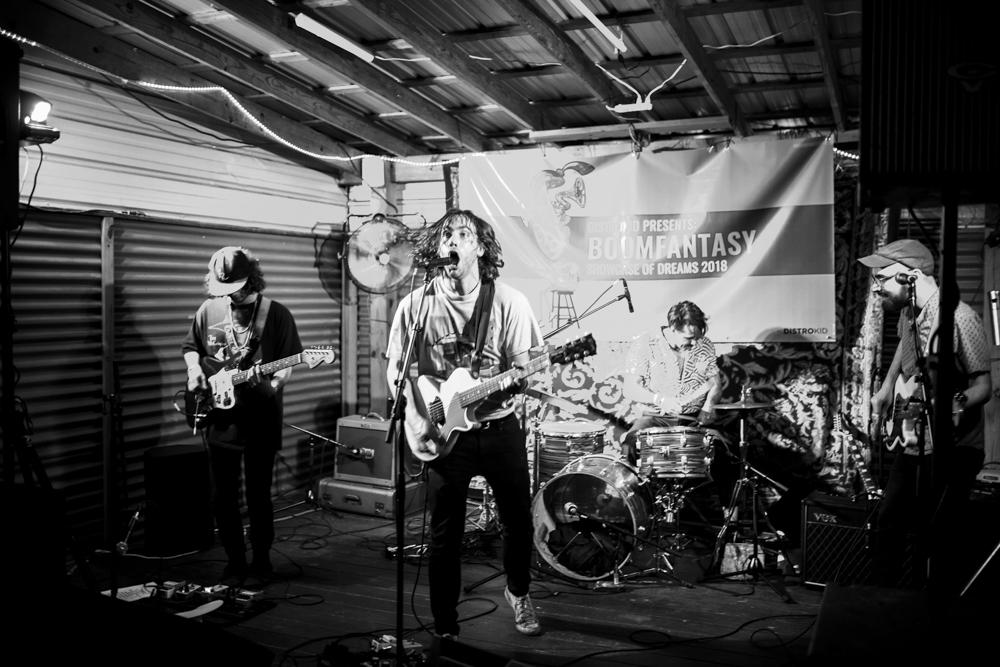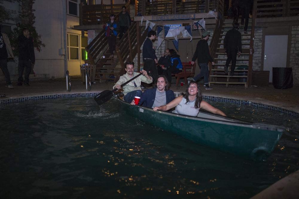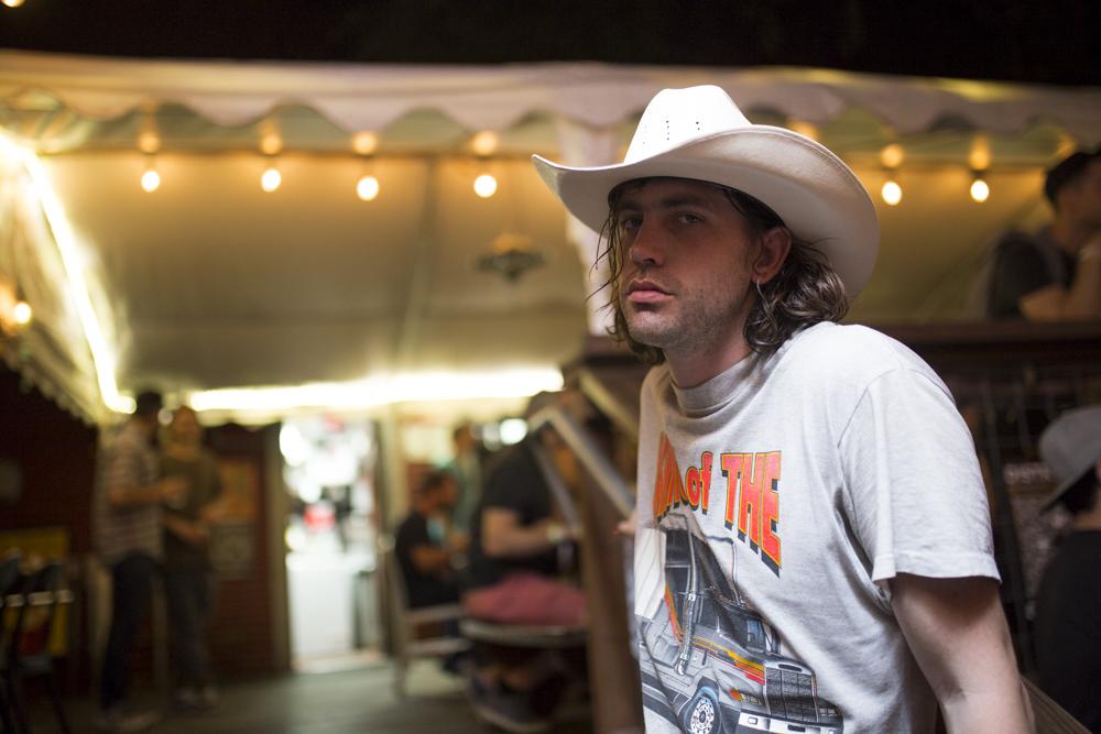 I ran into Cold Fronts a handful of times during my time at SXSW, most notably riding a kayak around a swimming pool post-Hinds concert. When I met up with the band at the end of the week at their showcase at Kababolicous, the band was amid a lively performance featuring tracks off their new album Fantasy du Jour which comes out April 20th. Frontman Craig Almquist was decked out in a cowboy hat and a “King of the Road” tee shirt proclaiming “if you are going to do Texas, you mind as well do Texas.”