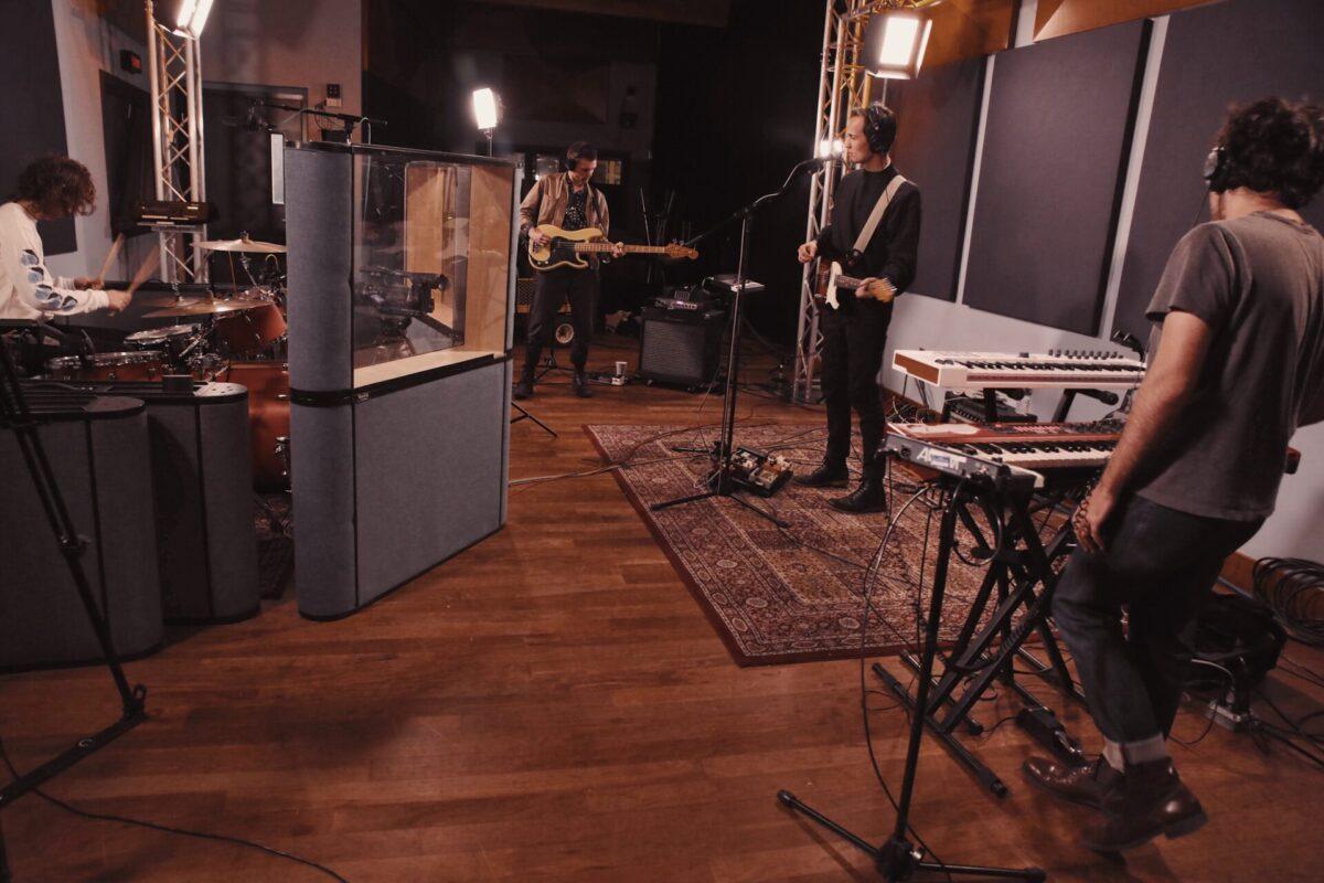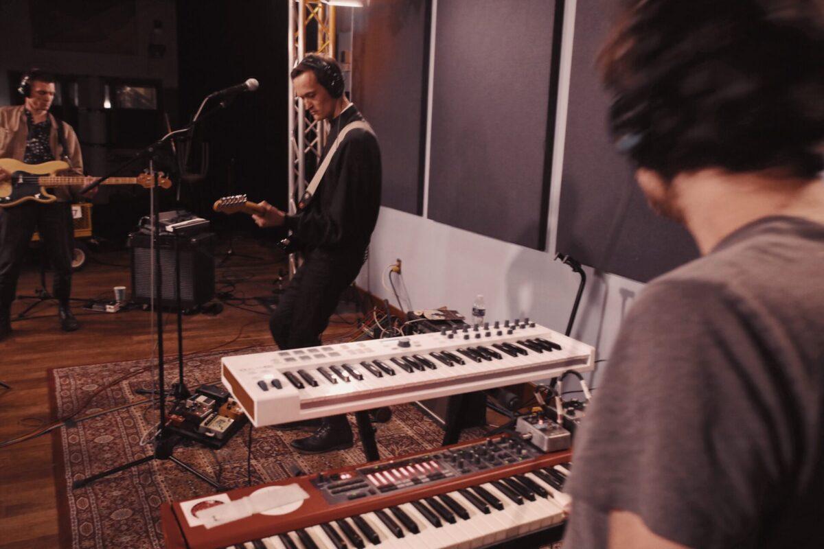 Our session starts with “These 3 Things,” which served as the first pre-release single to Room Inside The World. It sets the scene for the album (and this set) in a perfect way; May’s gurgling keyboards and the song’s bright melody signal that this is a new side to Ought. Next is “Disgraced In America,” which conjures a similar black-sunglasses-strut as some of the highlights from Darcy’s 2017 solo album, Saturday Night. Darcy delivers the fragmented, impressionistic lyrics in a variety of fluid vocal styles while Keen and Stidworthy lock into rhythm. On the album, “Desire” is perhaps the biggest stylistic leap that Ought has made, incorporating a full choir and orchestral flourishes. In our session, the song is stripped down to its bare essentials, with the thrilling finale hitting just as hard. At the end is a bonus song: a take on “Disaffectation,” one of Room Inside The World‘s most dynamic songs. What begins as a headrush of punk energy winds up melting into a half-speed breakdown.
