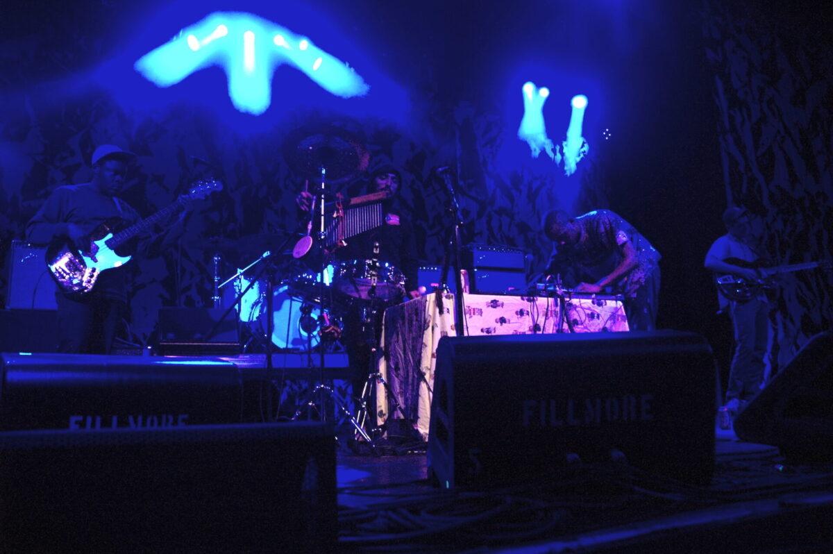 The ambient, swirling effects translate to the set on songs like “Midnight 01 (Deep Sea Diver)” thanks to Connor Atanda’s live sampling skills. Manning the decks, Atanda samples, filters, and loops Marshall’s vocals to create dense layers of sounds, producing echoing soundscapes that fill up the grand hall at The Fillmore. For the unfamiliar, it may be easiest to see Atanda at work in the band’s recent Tiny Desk Concert.