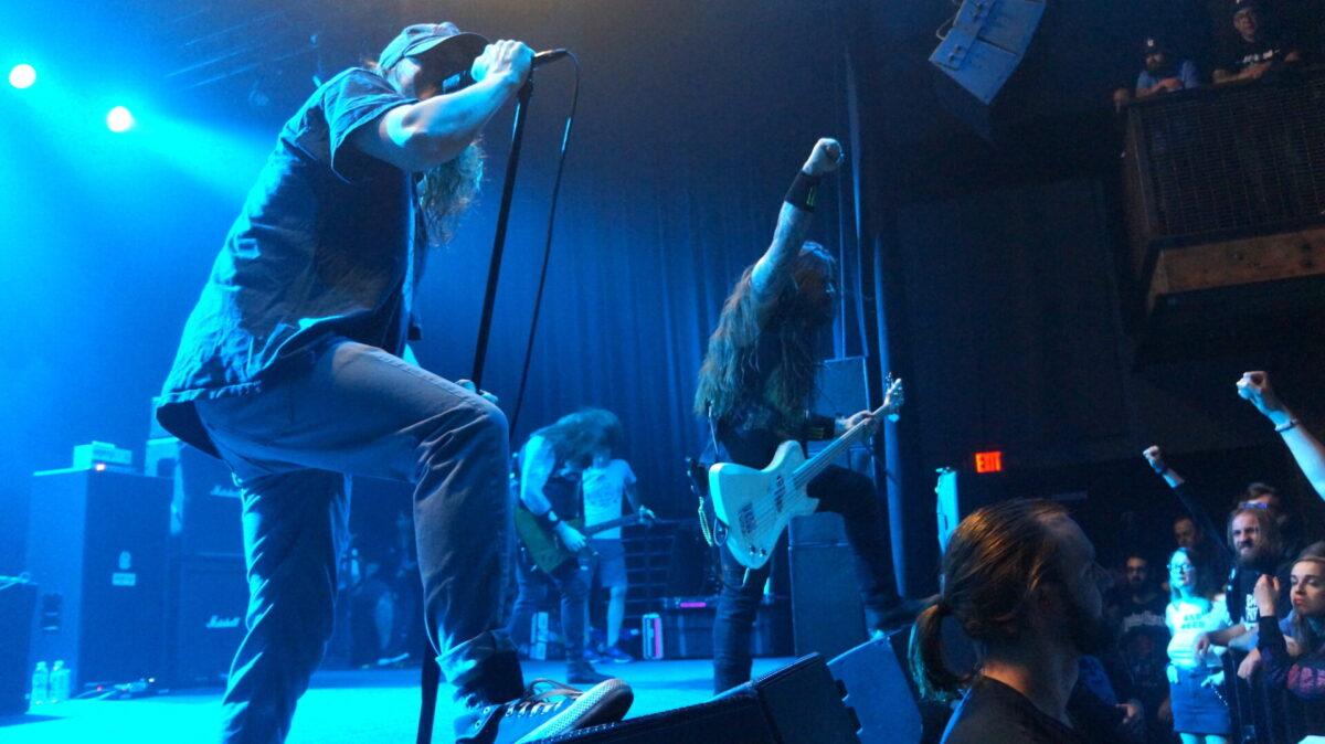 At first, Sheer Mag looked like an outlier. How would Philly’s coolest punksfare on a four-band lineup with three thrash bands? As it turns out, even metalheads like to dance sometimes. After both openers Red Death and Fury had exited the stage, Sheer Mag graced the stage and the crowd got its first opportunity to take a break from moshing. They seized upon it.