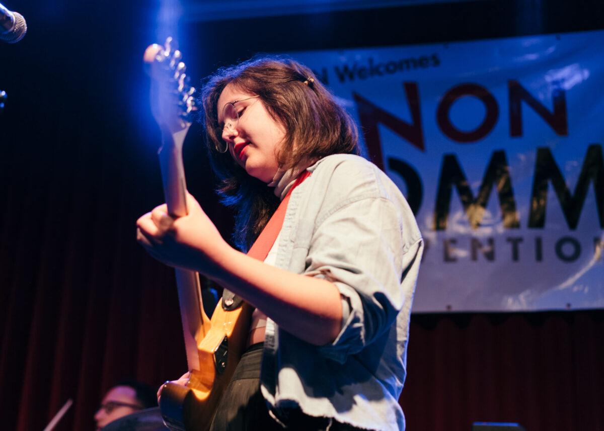 Virginia native Lucy Dacus delivered an incredibly sophisticated performance, second to last on the upstairs stage for NONCOMM night one. Following the blowup success of 2018’s LP, Historian, it seems like the radio can’t get enough of her. Dacus was introduced tonight by NPR’s Bob Boilen, who called Historian his favorite album of the year.