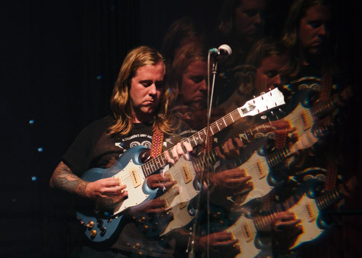Early on in their set, Sweet Spirit entranced the crowd with the relatively tame 2015 track “Rebel Rebel.” In the back half of the song, bassist Jon Fichter lead the band in a campfire roundabout rendition of the track’s chorus, with the rest of the bandmates huddled around their mics repeating the chorus delayed. The building mash up of vocals launched the band into an explosive finale. Leading into “Baby When I Close My Eyes,” the band kept the tempo high throughout the rest of their set.