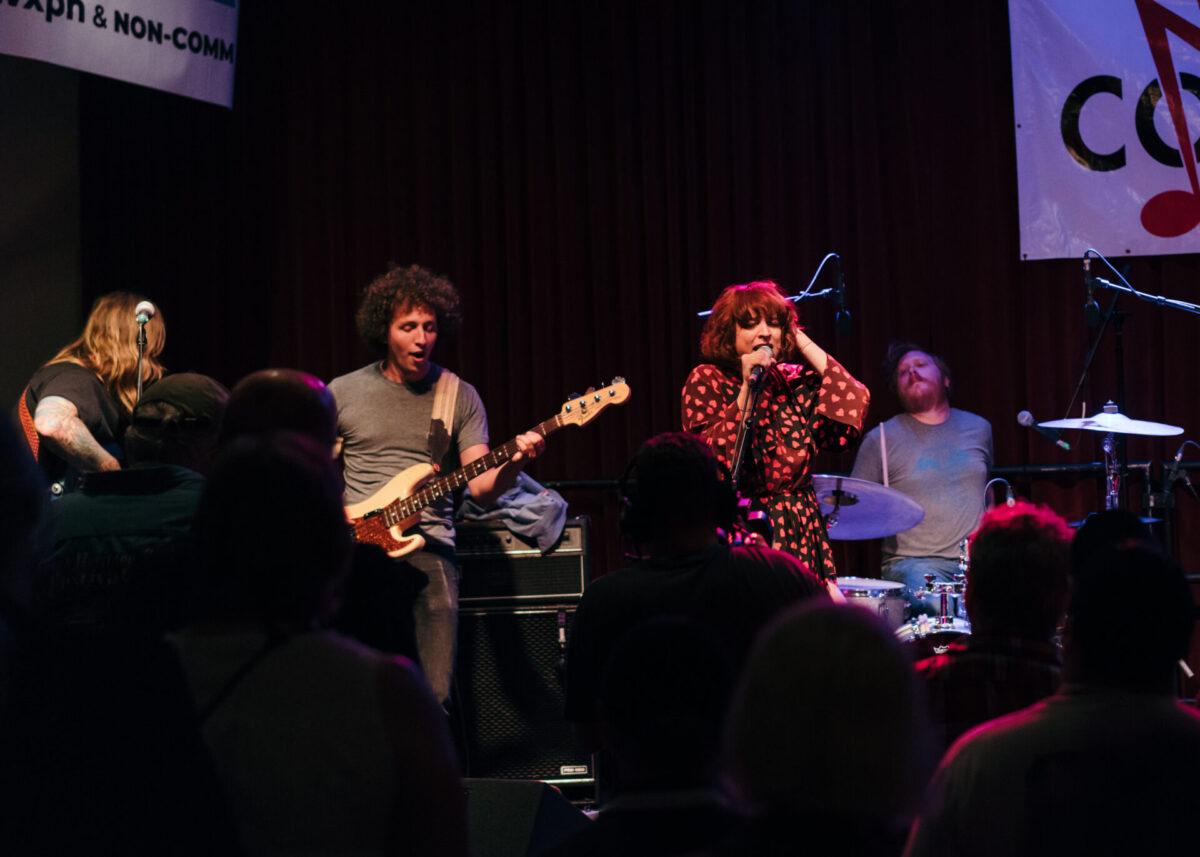 Sweet Spirit are the powder keg of NonCOMM, just waiting to explode given the opportunity. Thursday night on the upstairs stage at World Cafe Live, the band had their chance. World Cafe host Talia Schlanger introduced the band by asking the crowd to feel their foreheads, received with confusion among the crowd. Schlanger followed it up quickly, saying “I guarantee you it will be dripping by the end.” She wasn’t wrong.