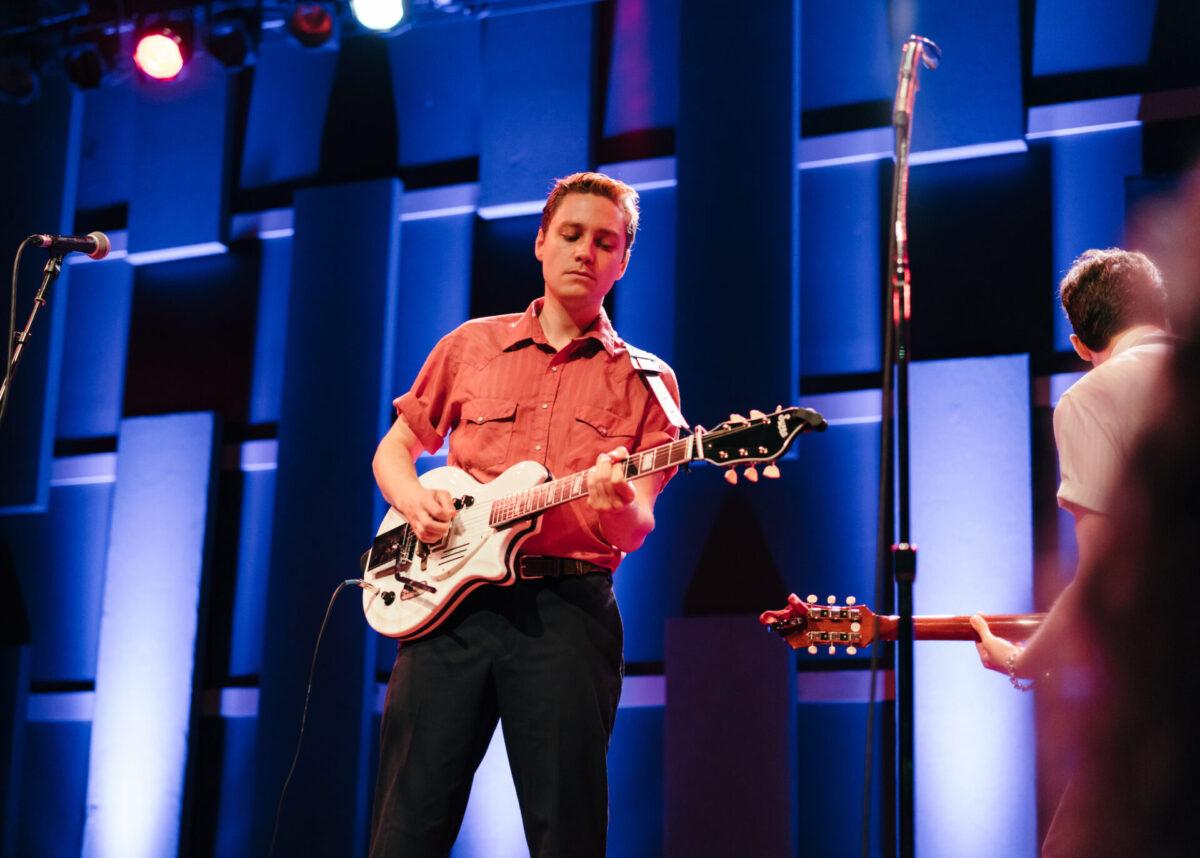 The weekend kicked off with a Free At Noon set from The Ruen Brothers, siblings Henry and Rupert Stansall out of Scunthorpe, England. The brothers wore matching bolo ties over button up shirts, crossing midwestern cowboy with 60’s greaser. Their music is nostalgic rockabilly, twanging with grit. The brothers shared a mic, trading harmonies with faces at kissing distance. Colin, who Henry dubbed their “third brother from Detroit,” played drums, pausing between songs to adjust his black plastic eyeglasses.