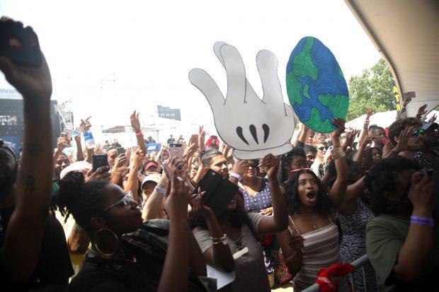 While Rapsody was on the North Stage, Philly rapper Tierra Whack took the Oasis Stage to crowd of devoted fans, friends and family. “My mom’s backstage,” she told the crowd. “Everybody say ‘HI MAMA WHACK!’” The MC and singer was riding on the energy of her just-released, imaginative Whack World visual album, and fans in front waved cardboard cutouts for the occasion – a “W” of interlinked hands, and a globe. It was in many ways a hometown lovefest, with Whack admitting that she called out of work to play the gig – “I just told them, it’s the Roots Picnic!” – and shouting out her old Spanish teacher upon spotting them in the crowd. But her strength is in her sound – a mix of clubby trap, melodic R&B, left-of-center art pop and rapid-fire old school bars. “Pet Cemetery” from Whack World was a standout, as was her 2017 single “Toe Jam,” which easily got the hook “Crack kills, if it don’t get you, Whack will” stuck in the heads of everyone watching.