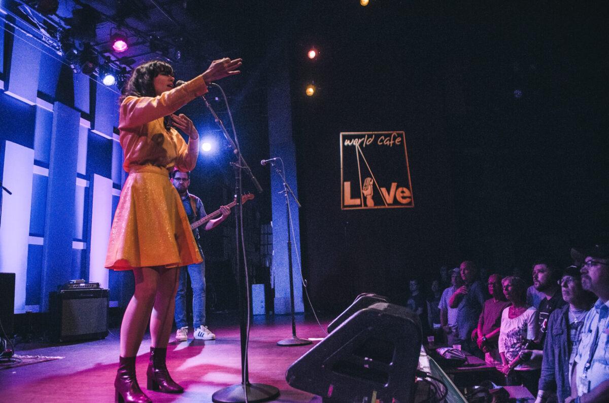Having showcased for Non-COMM 2018 a couple weeks ago, as well as recording in-studio for her upcoming World Café session, Prass says “it feels like a second home now, World Café”. She followed with “Hot For The Mountain” a song that feels bigger than the room, reaching for the boundaries of her voice, but never finding any. “Christy” and “My Baby Don’t Understand Me,” two songs off her self-titled debut album, are softer but no less impressive. Throughout the concert she showed off her dynamic abilities, going from groovy-yet-powerful anthems to songs that make the downstairs venue feel like an intimate speakeasy, evoking both the fiery popstar and the soulful lounge singer she can be. She’s engrossing as a front-woman as well, at times radiating as much emotion with her hands and shuffling dances as she does with her glowing voice.