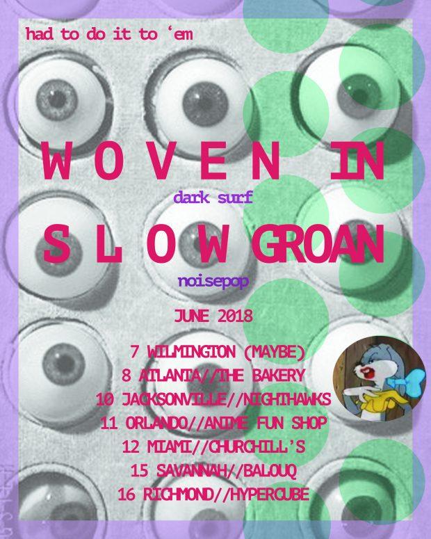 You can stream Razzmatazz here and watch the accompanying video below. Woven In is currently on an East Coast tour with Slow Groan, and plays Atlanta tonight. Dates and details in the poster below.