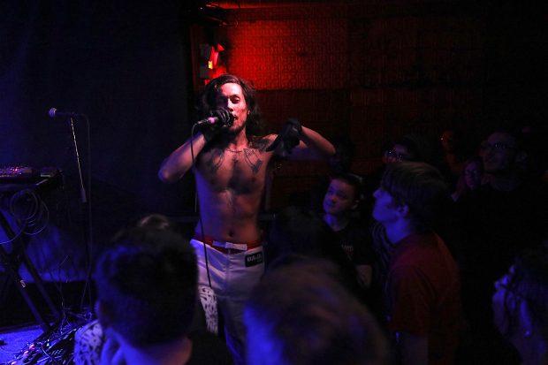 For week one, we got Australia’s Promiseland, which is the confrontational yet party-loving project of Johann Rashid, who gets in the crowd’s face, borrows hair clips and allergy medicine, jumps offstage and dances in the center of the room to bombastic industrial beats while rocking the mic in an aggressive, but ultimately life-affirming speak-sing style. Imagine a middle ground between The Fall and Dan Deacon, and there you go. Tonight’s show is opened by Beau, the project of NYC songwriters Heather Golden and Emma Rose Jenney, and then Promiseland returns for the 18th and 25th.