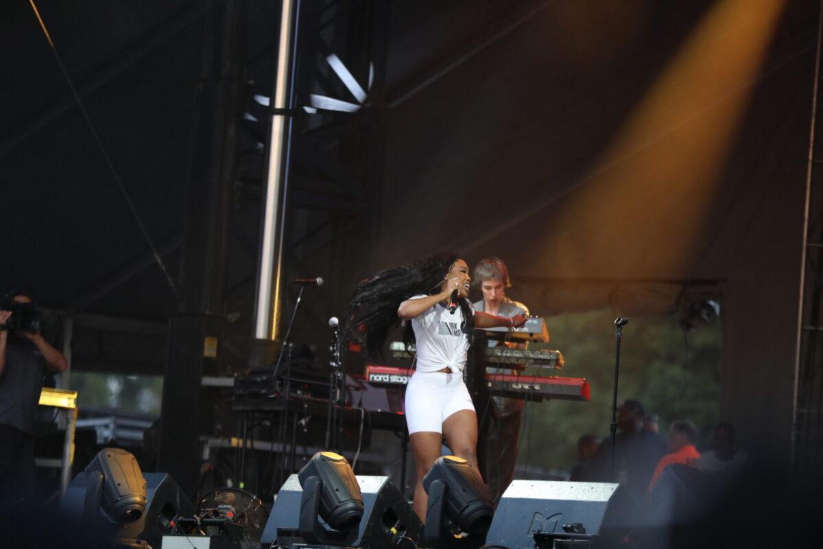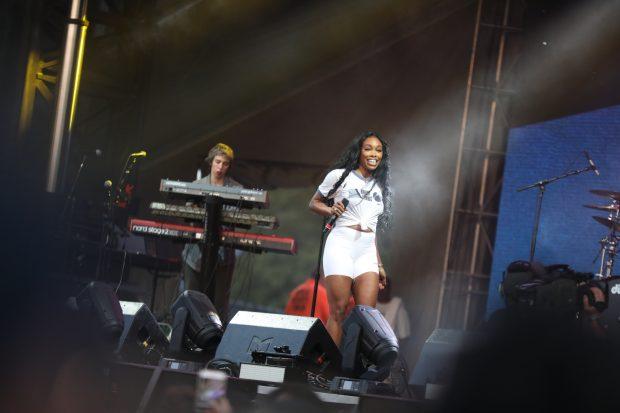 Best of the day was SZA, who made her grand return to the mic for a throng of adoring fans clamoring at the Backyard Stage. She’s been on a self-imposed hiatus for the past month due to swollen vocal chords, didn’t appear on much of the recent TDE Championship tour, and at one point worried on social media that her voice was “permanently damaged.” The great news is she sounded fabulous last night; her nerves at performing again poked through at one or two places, a shaky vocal run and a soft crack, but that’s being nit-picky. “Drew Barrymore,” a fan favorite from last year’s stellar CTRL, sounded outstanding, as did the Kendrick-featured “Doves in the Wind” (K-dot was not present for his verse, alas) and the singalong “The Weekend.” Her energy was commanding and confident throughout, with a beaming smile, she profusely thanked the welcoming crowd for making the comeback so easy for her, and reminisced about going to college in Dover at DSU.