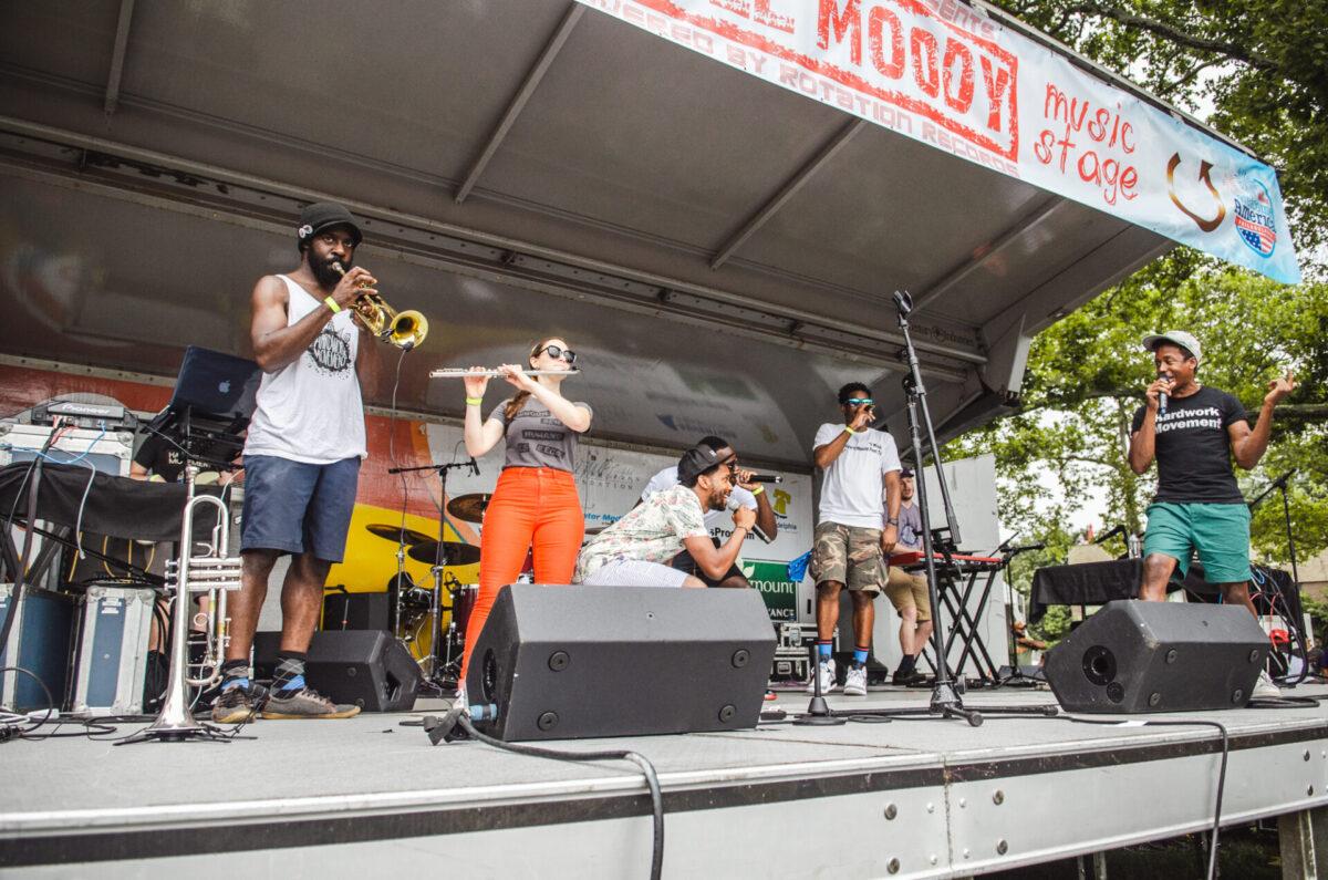 Over a dozen local artists and DJs spent this 4th of July in a wooded grove along the Benjamin Franklin Parkway as the first-ever Chill Moody Music Stage at the Wawa Welcome America Festival celebrated the sounds of Philadelphia. Below, check out an assortment of scenes from the event — including spaced-out composer Max Swan, charismatic rappers Boogieman Dela, Luke O’Brien and Shawn Smith, hip-hop live band ensemble Hardwork Movement, and rock and roll powerhouse Foxtrot and the Get Down.