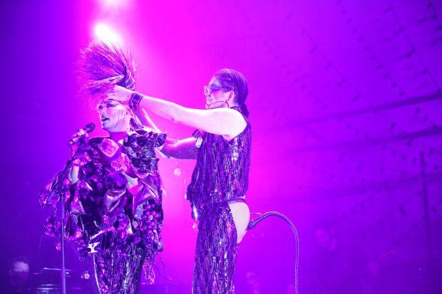 There was precisely one moment when I turned to a friend and said “now, this seems just a little indulgent.” But it wasn’t the astoundingly acrobatic, by-no-means-simulated “prison shower scene sex fantasy” orgy that took place onstage during the 1946-’56 “suburbanization” decade. Nor was it the pair of gigantic inflatable cocks – one adorned with the Stars and Stripes; the other Soviet red with a hammer and sickle – that lumbered above the audience before clashing orgasmically, to the epic strains of Bowie’s “‘Heroes,’” as the climax of the 1976-’86 “decade of the backroom sex party” (and, evidently, of the cold war.) No…that felt totally earned. It was what happened just after that: Mac performed “Purple Rain” – introducing it as “the best make-out song ever” – which somehow struck me as the first disappointingly obvious selection; the second mega-iconic anthem in a row, and a surefire crowd-pleaser but, in context, not much more than that. (Perhaps if it had inspired more than a bit of mild face-sucking from a handful of audience couples.) Then again, if there’s ever an appropriate moment to be lavishly excessive with your lavish excess, the 1980s is probably the time to do it. So maybe that was right on the money too.