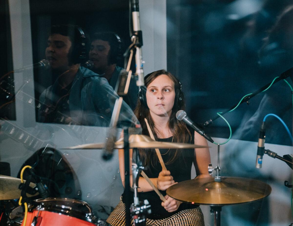 Joining us in the studio for this Indie Rock Hit Parade Live Session is the band that’s behind one of 2018’s finest debuts. Though they formed only a few years ago, Flasher have quickly become mainstays of Washington, DC’s bountiful punk scene. Formed by guitarist Taylor Mulitz (who is also a member of the equally lauded band Priests), bassist Daniel Saperstein and drummer Emma Baker, Flasher’s early EPs and singles were released on Sister Polygon, a DC-based label the members founded. When it came time to release Constant Image, Flasher’s full-length debut, they made the jump to Domino Records, who put out the album earlier this year. Before their show at Everybody Hits, Flasher visited our studio to perform a few of the new songs.