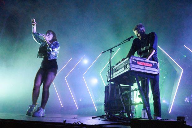 Though Durham electronic rock act Sylvan Esso keeps things straightforward personnel-wise — Nick Sanborn on samplers and electronic gadgets pumping out rhythms and textures, Amelia Meath on vocals and air kicks and pure energy — the duo is more than enough to fill spaces this big. Opening on the meditative pulse of “Sound,” the band warmed it up gradually song by song, jogging and jumping on “Signal” from last year’s What Now, hitting a full sprint on the effervescent “Kick Jump Twist.”