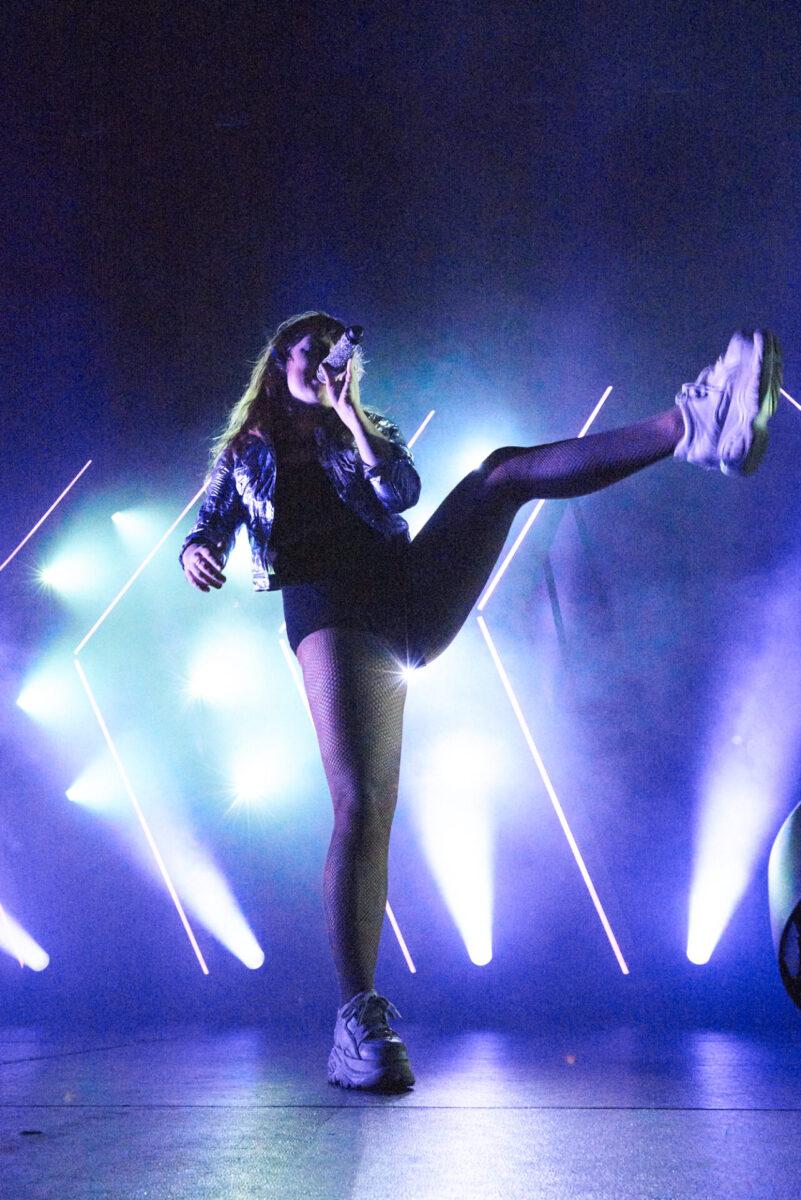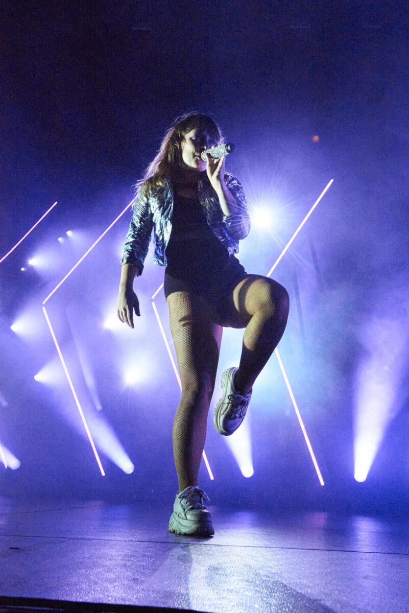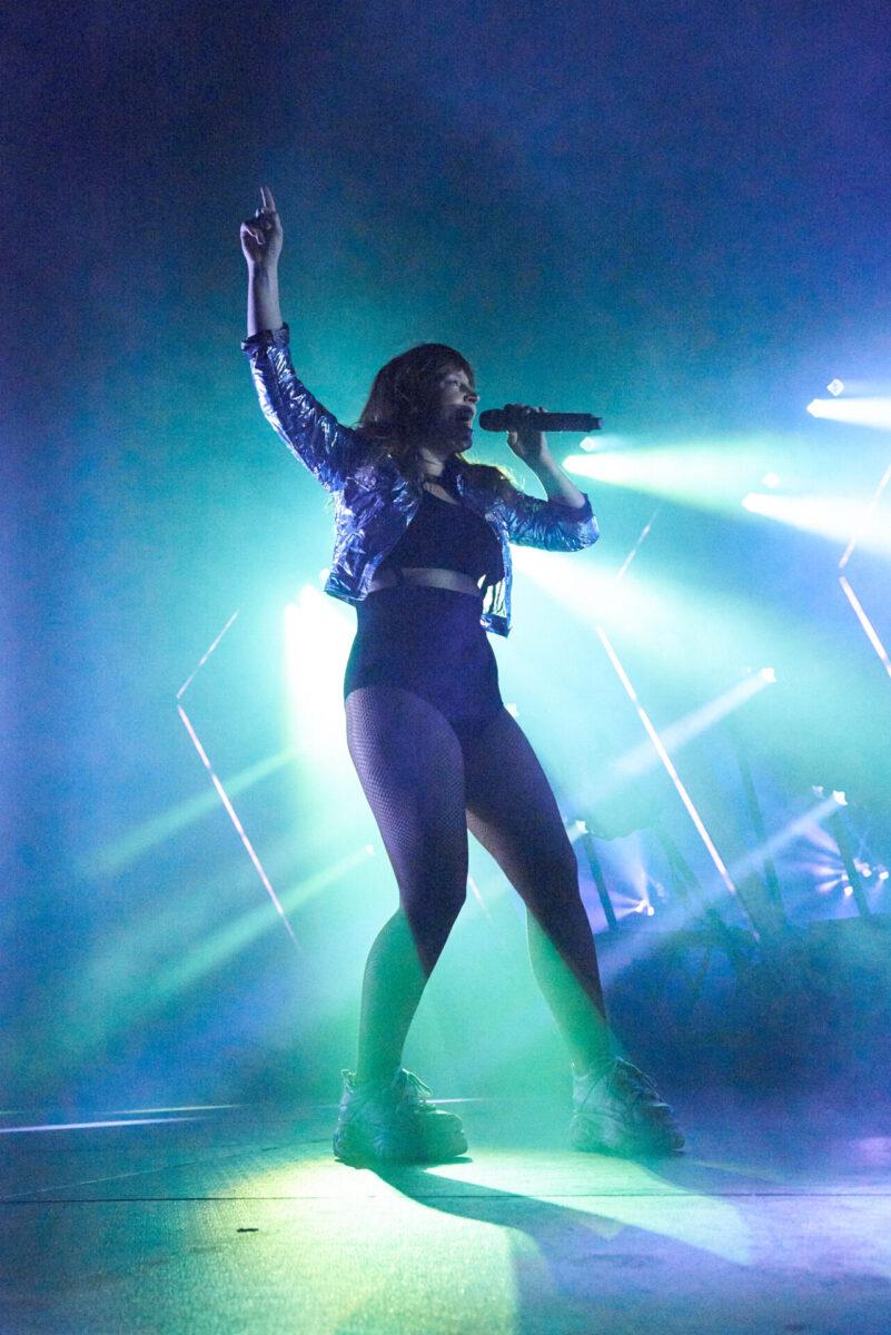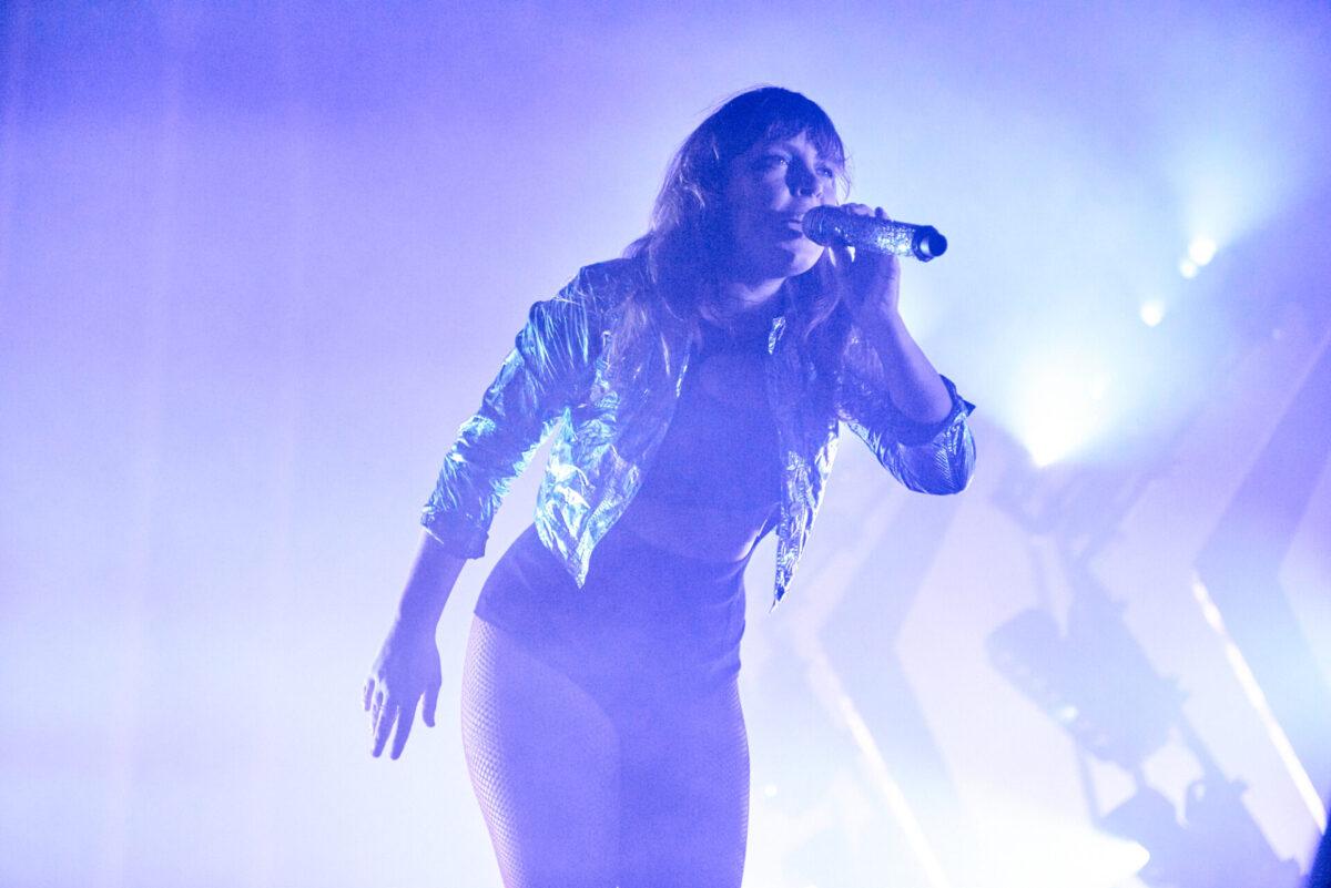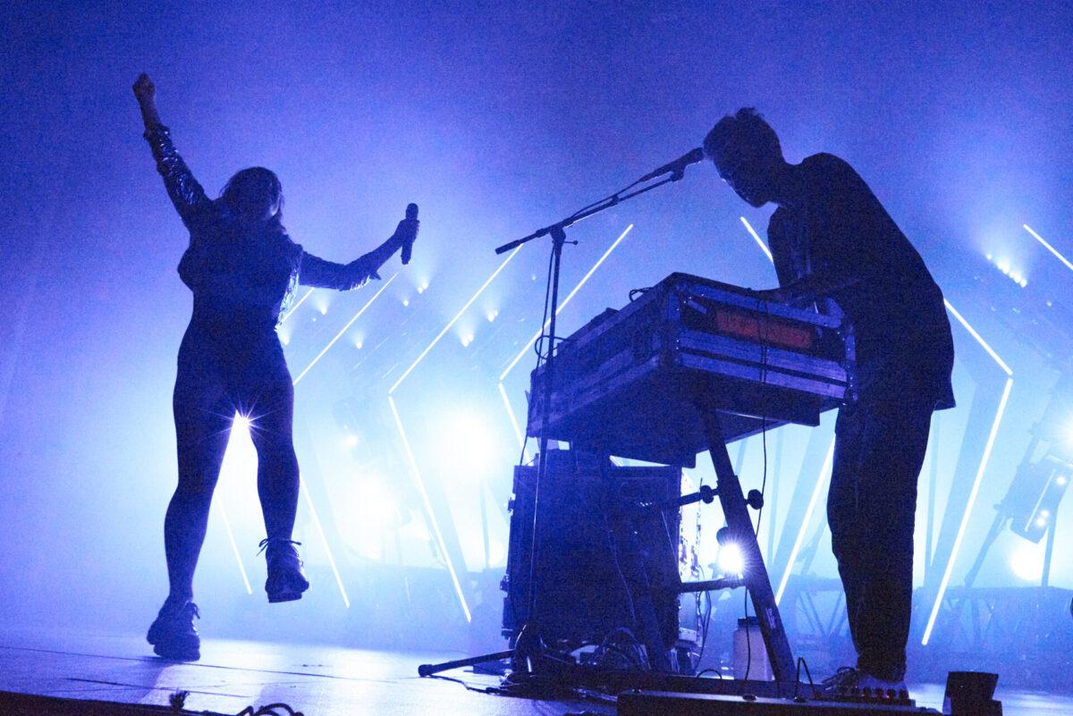 Though Durham electronic rock act Sylvan Esso keeps things straightforward personnel-wise — Nick Sanborn on samplers and electronic gadgets pumping out rhythms and textures, Amelia Meath on vocals and air kicks and pure energy — the duo is more than enough to fill spaces this big. Opening on the meditative pulse of “Sound,” the band warmed it up gradually song by song, jogging and jumping on “Signal” from last year’s What Now, hitting a full sprint on the effervescent “Kick Jump Twist.”