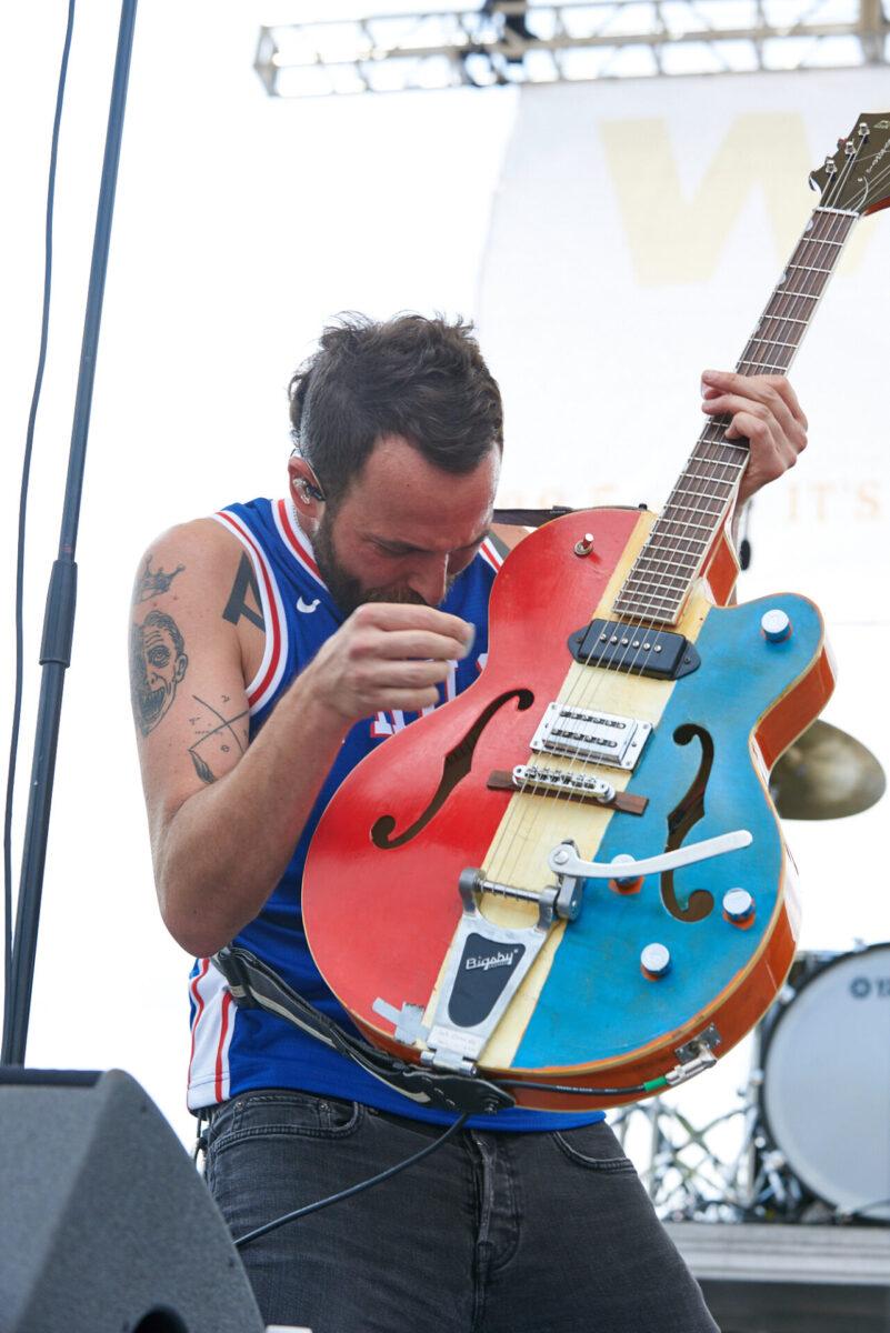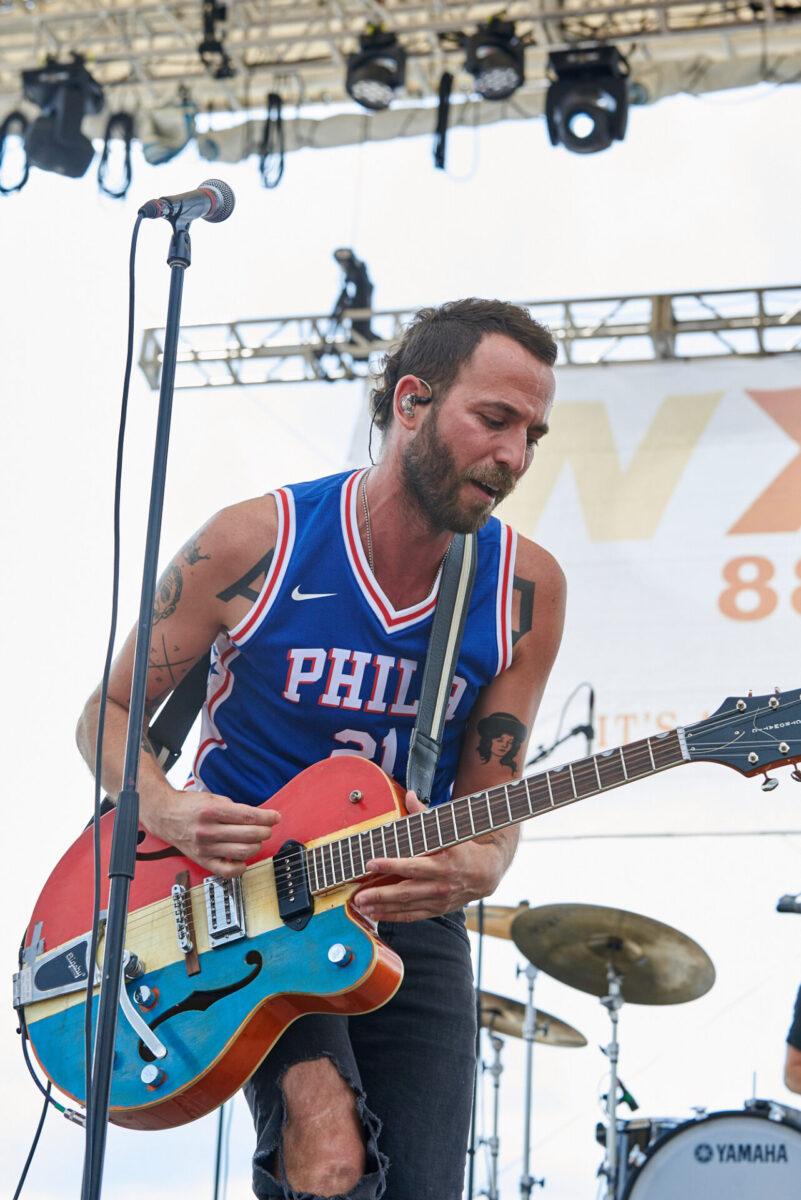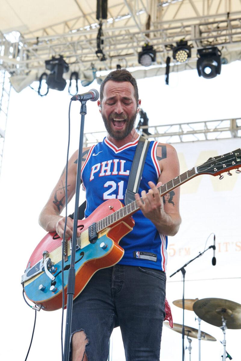 Bucks County-bred, Los Angeles-based Mondo Cozmo took the River Stage full of gratitude as frontman Joshua Ostrander reflected on how he’s been sending music to WXPN host Helen Leicht since he was a kid, and now here he is. They kicked off their set with “Come With Me,” as well as a quick reveal of Ostrander’s Embiid basketball jersey. Do we love him or do we love him?