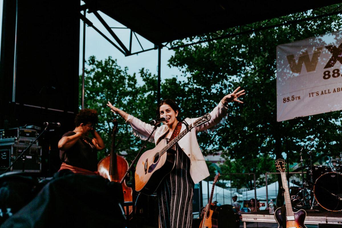 They confessed that this was their first festival, adding, “Usually we play dark lit halls with shots of tequila.” Guitarist Becca Mancari, in a striped jumpsuit and white fringe jacket, introduced “Rosie” with a tidbit of backstory: “We wrote this while staying in Jimmy Buffett’s cabin, we had a wild night and stayed up to eight in the morning.”
